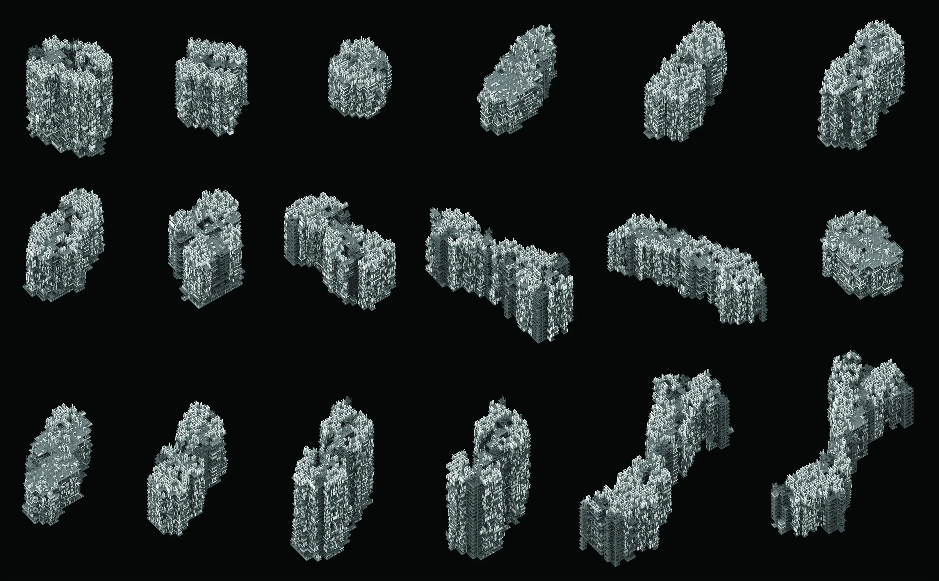 Is it possible to sample at scale and at high-resolution every single building ever built in a country? If so, can such a dataset be used to train an AI model in generating new yet locally compliant buildings without any explicit regulatory control inputs? The project explores the design agency of deep generative neural networks in learning architectural notions of three-dimensional exteriority and interiority with a redesigned 3D generative adversarial network (3D-GAN) architecture trained with a large dataset of 3D digital models of high-rise buildings found in Singapore. The work has won several design awards (e.g., WAFX, BLT and IDA).