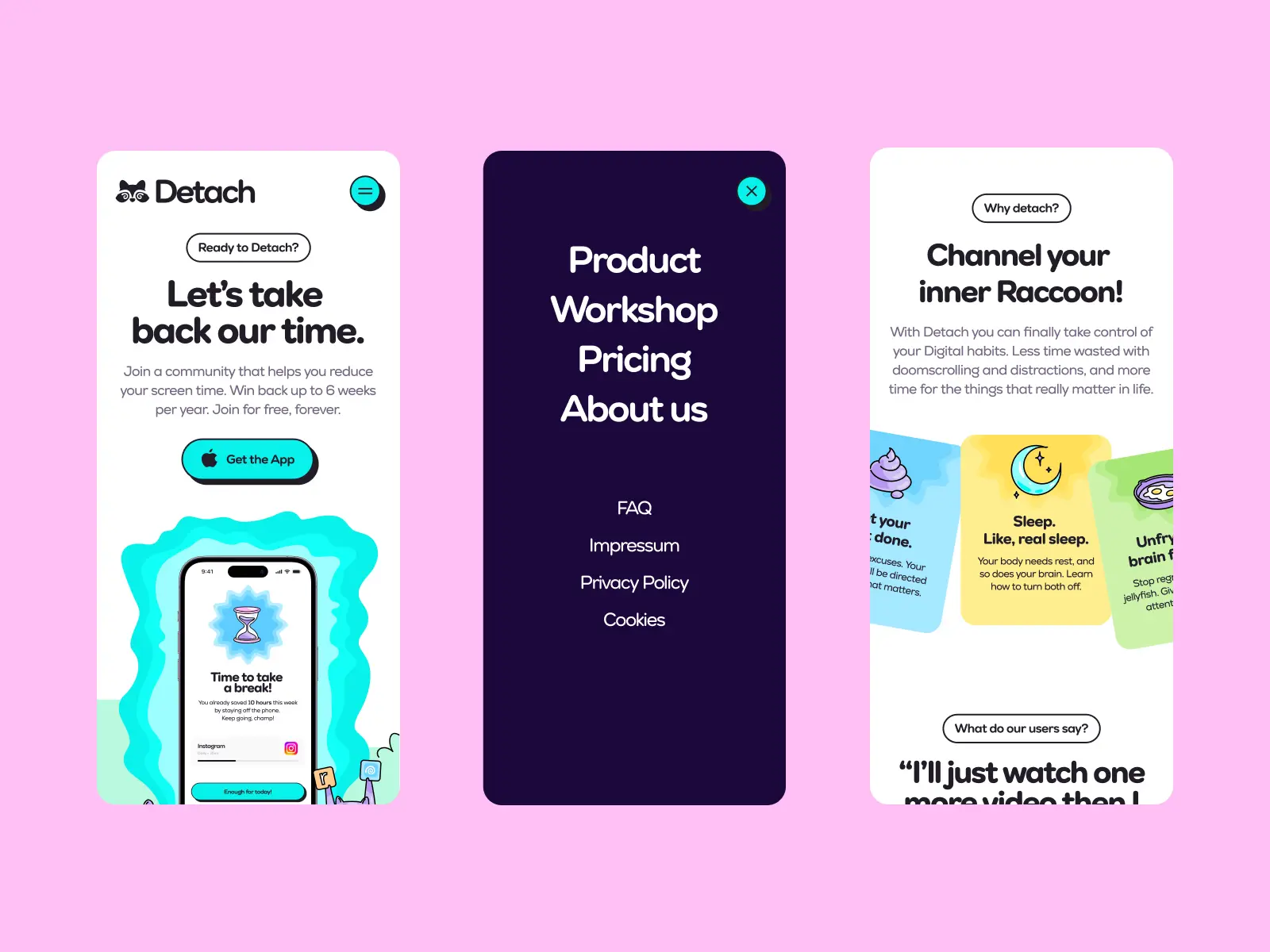 A brand brimming with life and emotions to position Detach clearly in a saturated market like the appstore. A unique universe with crazy Raccoons, complete with detailed illustrations and animations. A brand that is then applied skilfully to online and offline presence. With a focus on bright colors, funny moments, the brand manages to be extremely unique and immediately recognizable at a glance, while also meeting the target audience (Genz, Genx).