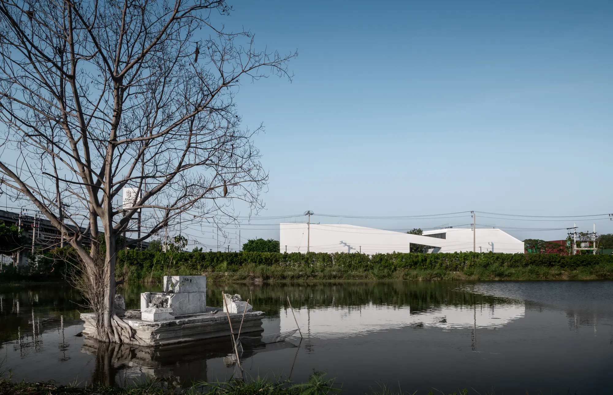 82 Concept is an iconic mixed-use project in the Suvarnabhumi area, combining a café, restaurant, bar, and office on a narrow, elongated site. The design balances simplicity and complexity with long parallel walls and a roof of shifting heights forming the number 8 – or infinity symbol – symbolising fluidity. Staggered openings and an internal courtyard bring light, ventilation, and greenery, while elevated areas enhance function. Circulation culminates in a sculptural stair to the rooftop café and bar, supported by passive ventilation, green zones, and energy-efficient glazing, establishing the building as a vibrant community landmark.