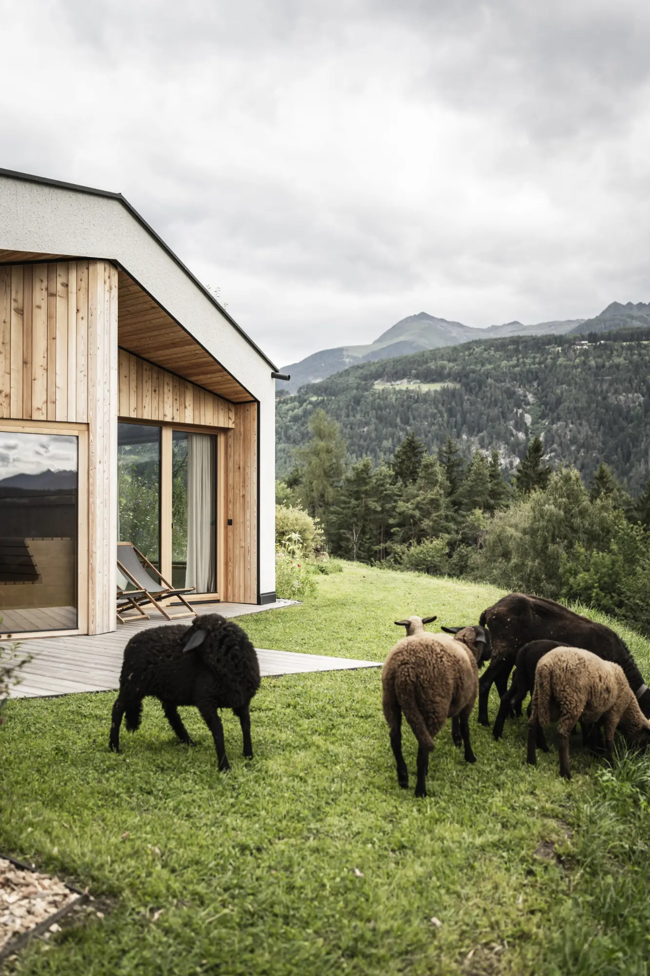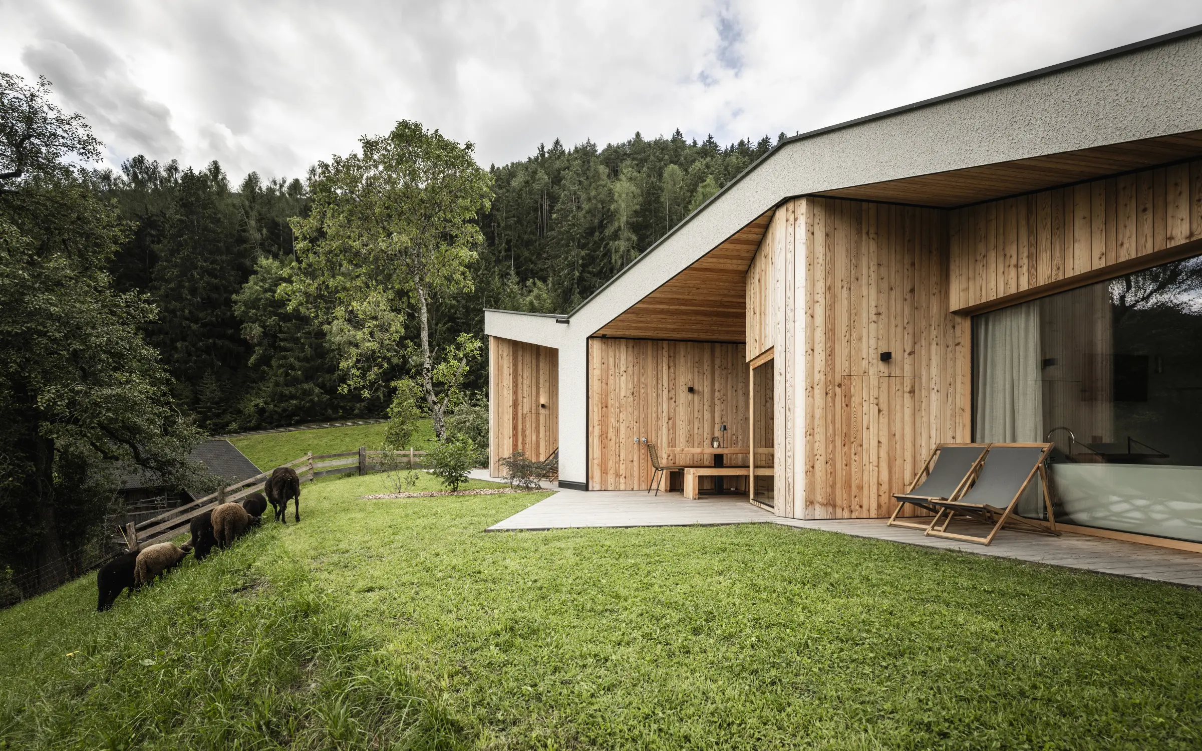 The striking extension of the traditional organic farm conveys pure alpine „joie de vivre“. The pure mountain air, a breathtaking idyll make your stay a very special experience. The existing building was expanded to include a farm shop and two cosy chalets. hoi°architektur has set itself the task of building bridges between regional tradition and modern lifestyle. Great importance was placed on incorporating nature and the characteristic rural environment. The clear architectural language and reduced materiality express the simplicity and sense of tradition that is still lived and practiced in these mountain regions.