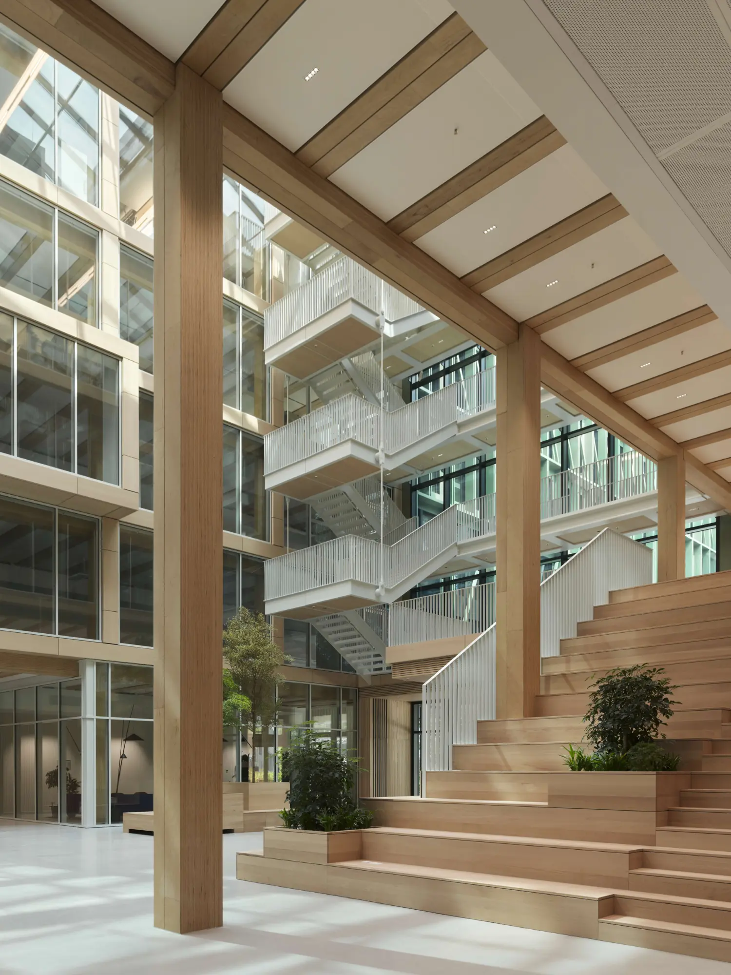 The i8 in Munich's Werksviertel district sets new standards for holistic architecture: Munich's first timber hybrid office building combines sustainability, user experience and architectural quality. Around 1,700 m³ of BauBuche bind 2,300 tonnes of CO₂, while the façade made of recycled aluminium and LEED Platinum certification underline the ecological claim. Inside and out, wood shapes the atmosphere, well-being and identity. With its contemporary design by C.F. Møller and full occupancy upon completion, the i8 demonstrates that sustainable architecture is ecologically, economically and culturally convincing – a holistic user experience.