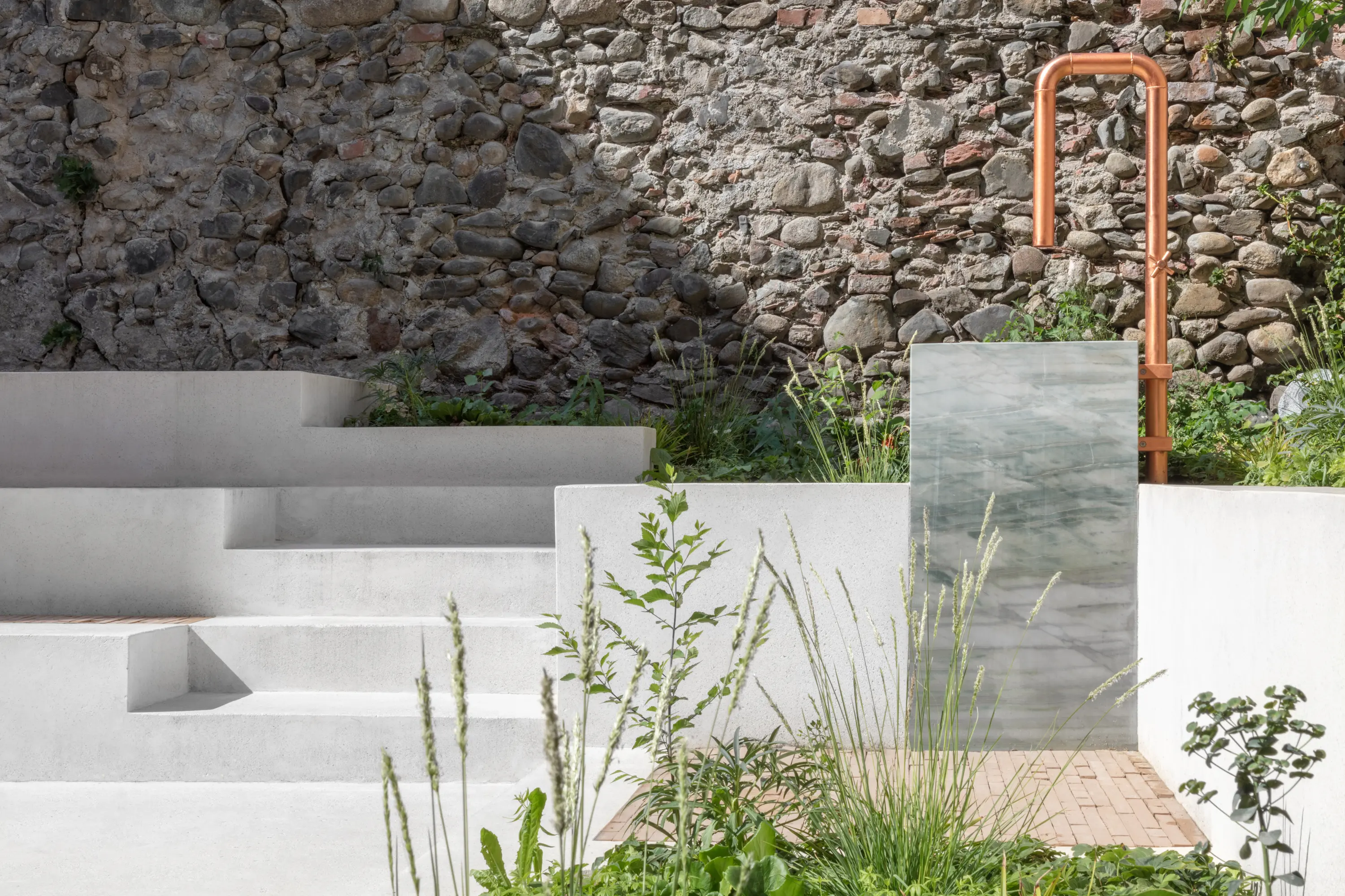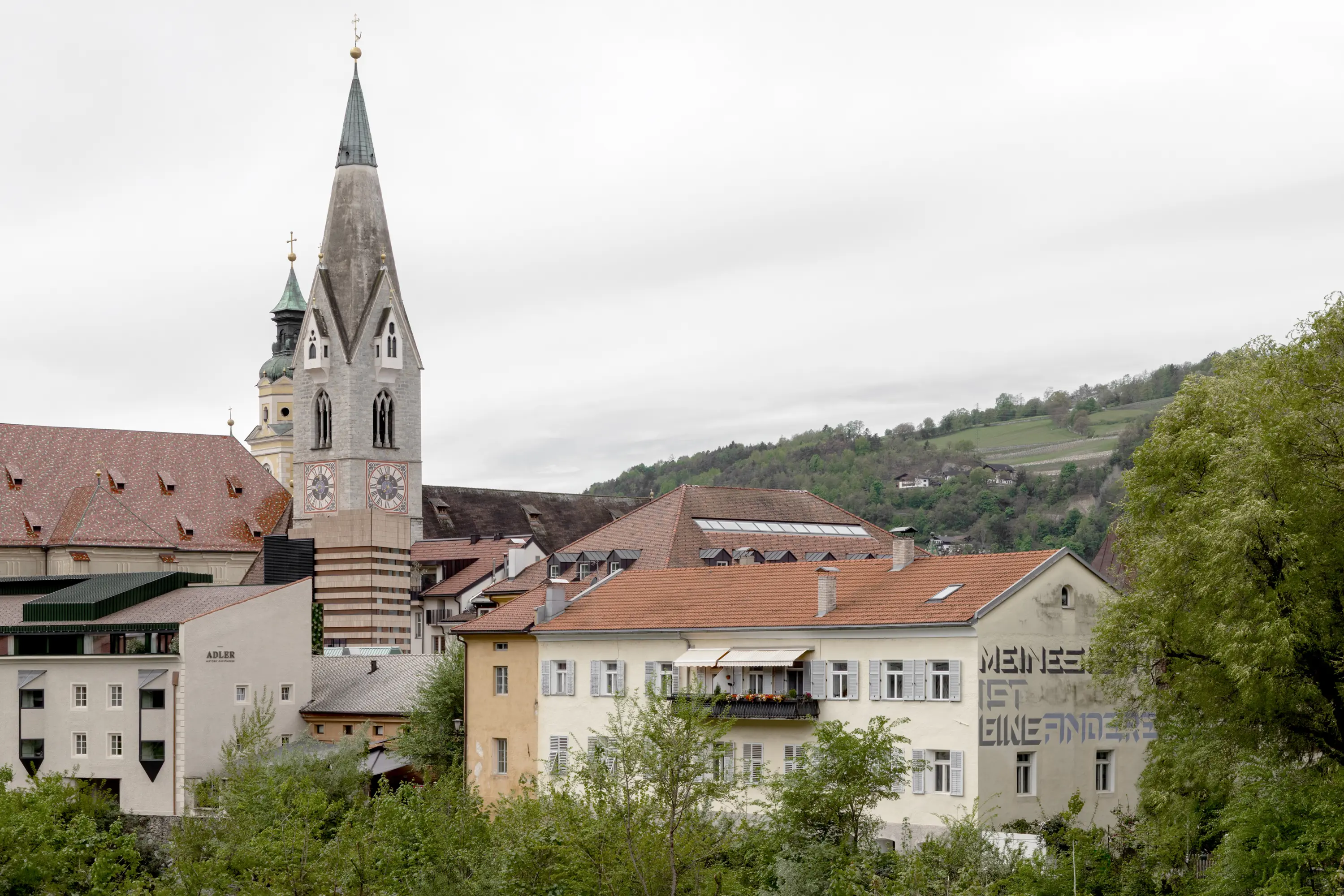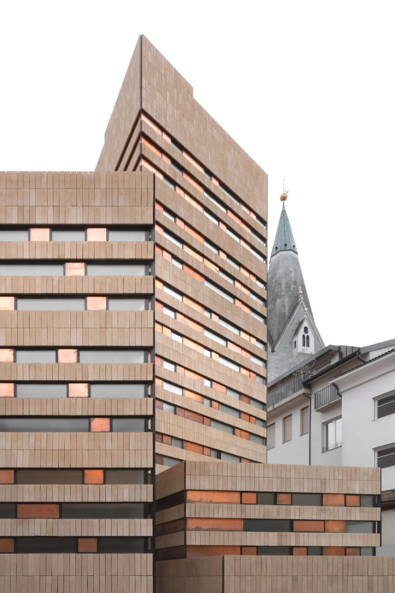 The project in the dense fabric of Brixen’s old town revitalizes a courtyard and makes it publicly accessible. New axes connect it with alleys, squares, and gardens. Careful interventions – removing extensions and opening passages – created spaces of dialogue between old and new, open to the city. With seating steps and a fountain, the courtyard becomes a meeting place for concerts, readings, and leisure. The new building makes efficient use of space, articulated in low volumes and a taller body that sets a slender accent. Green roofs provide views and privacy. The bar opens to the city, bringing together locals and visitors.