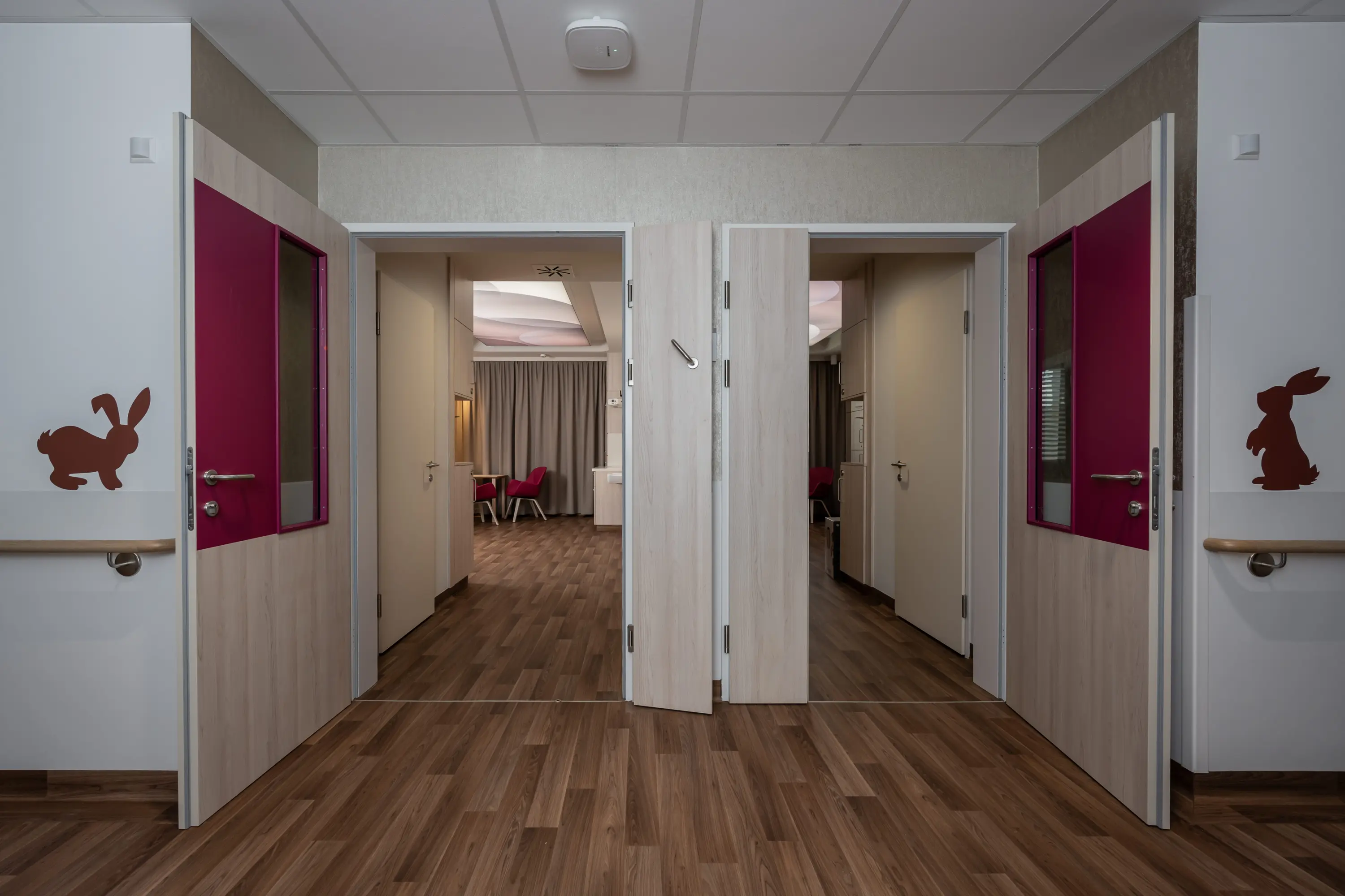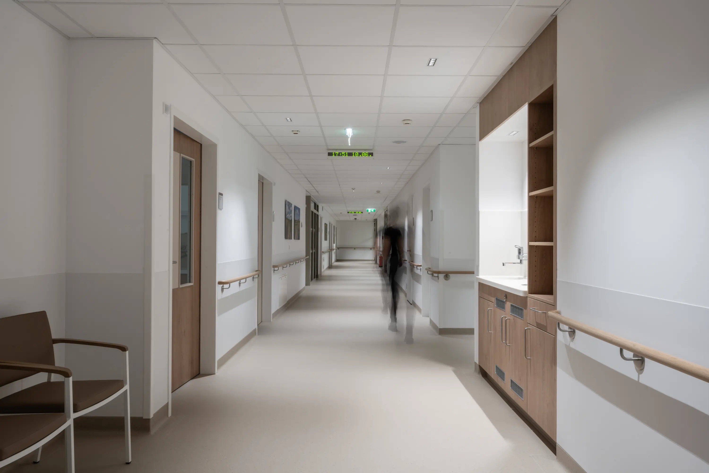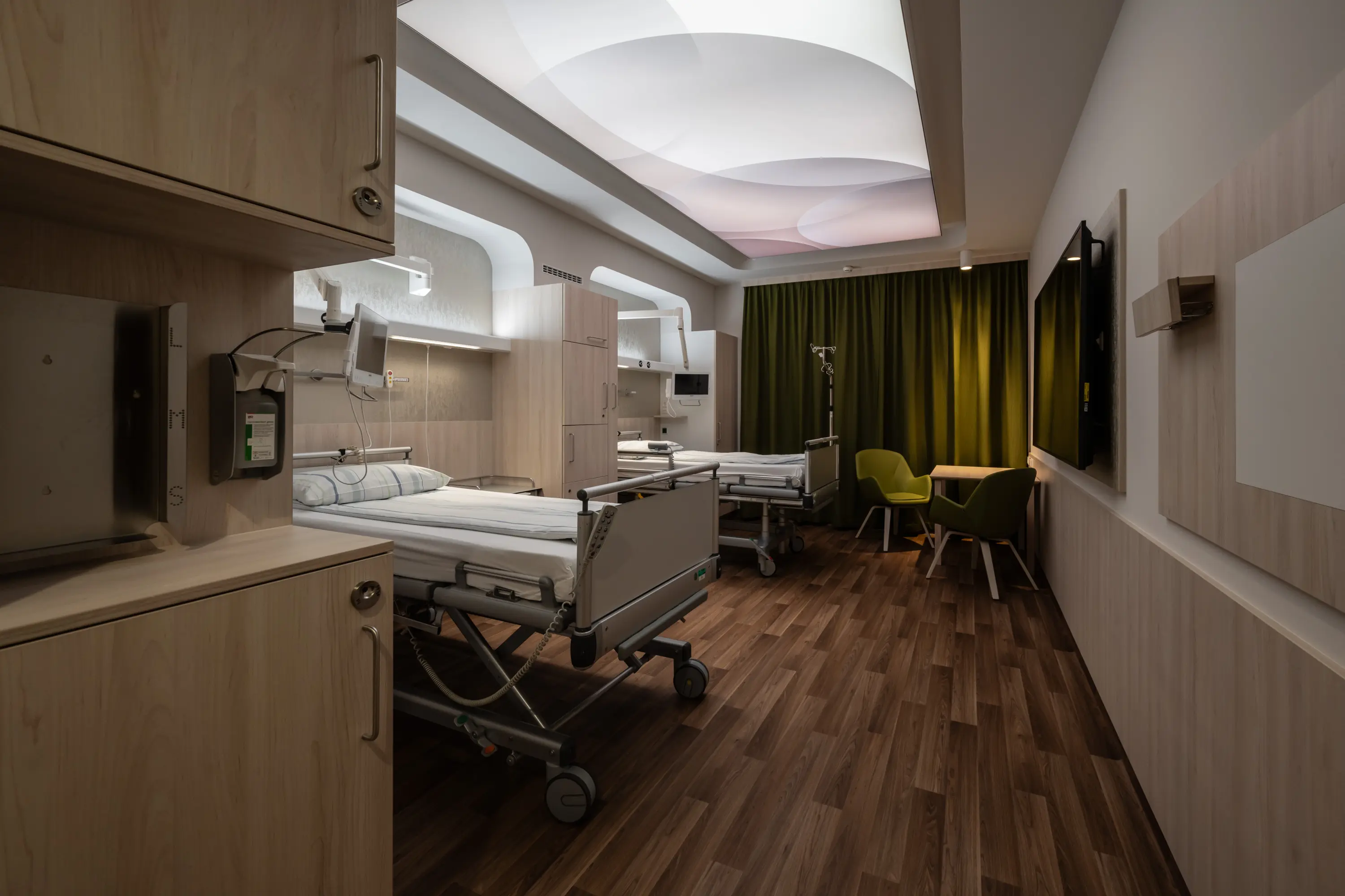 Hospital planning is subject to numerous laws and standards, particularly hygiene regulations. They are, therefore, highly functional and specialized workplaces whose sole purpose is to provide staff with optimal support to ensure the best possible patient care. In the design of this hospital, within this functional framework, great importance was placed on the atmosphere of the rooms to convey a familiar and positive feeling to patients in this high-tech environment. The patient is the centre of attention.