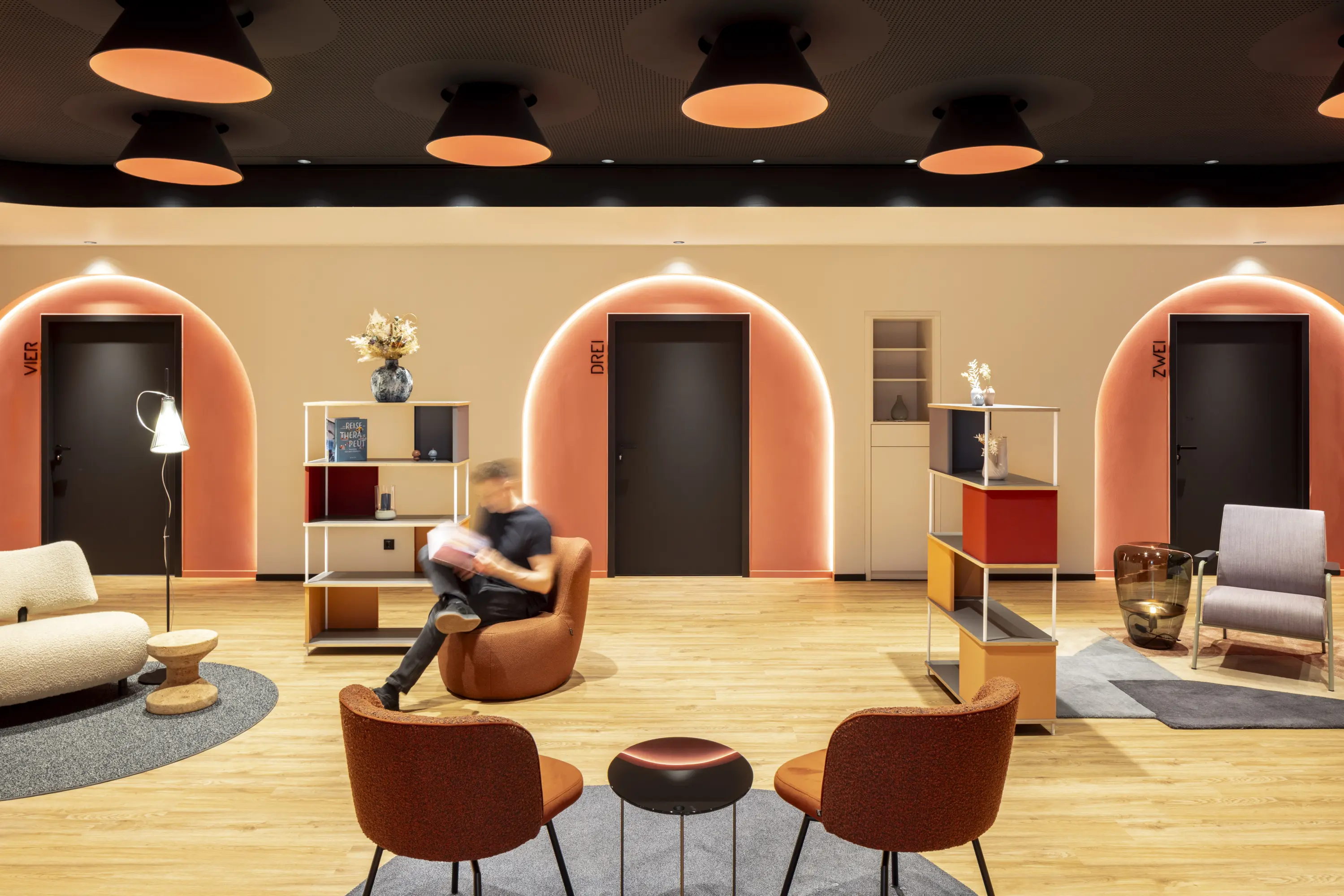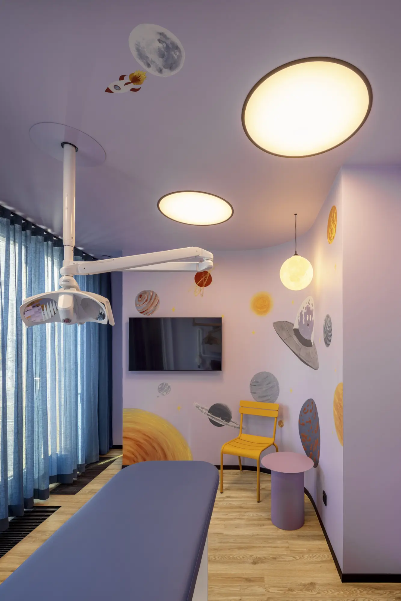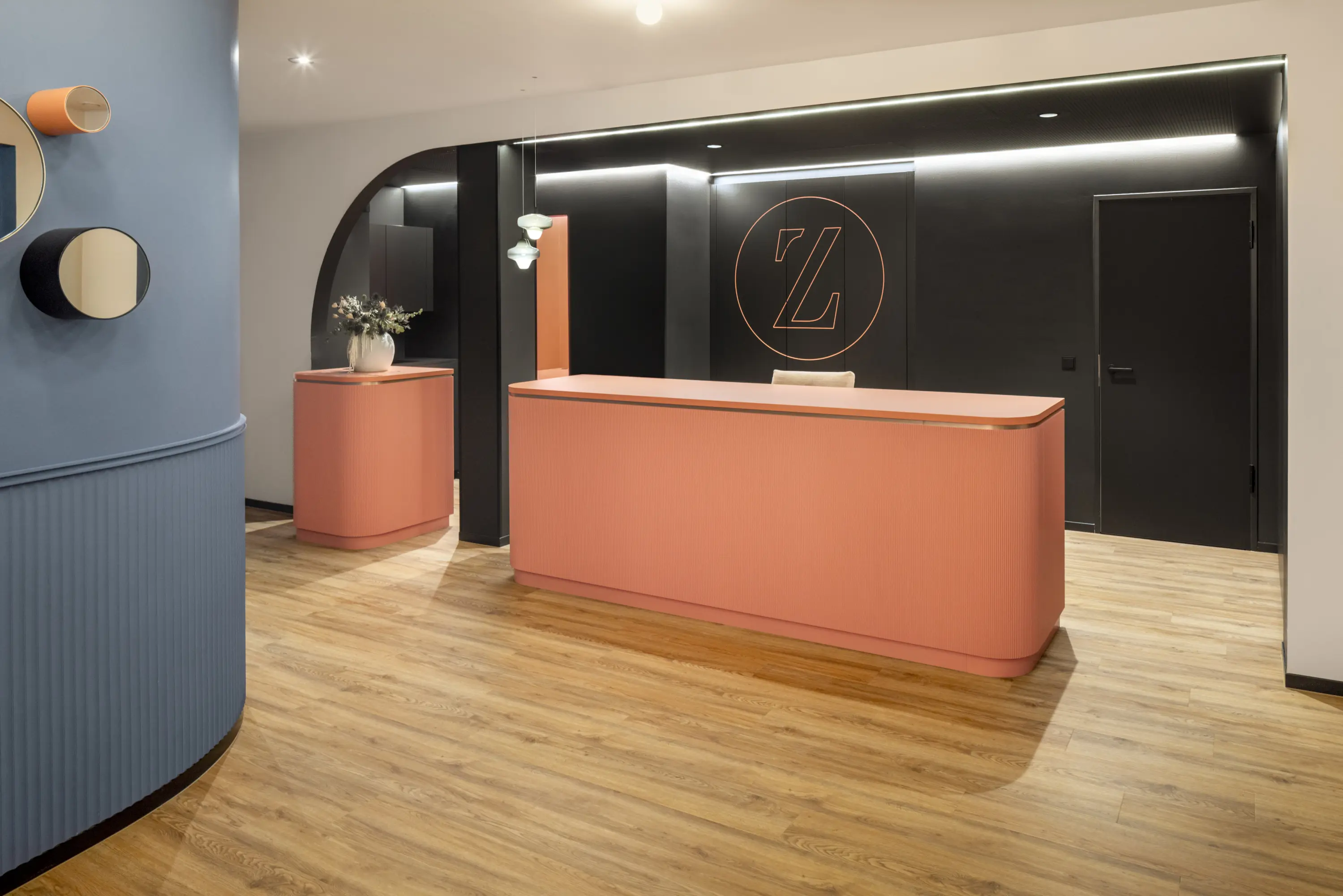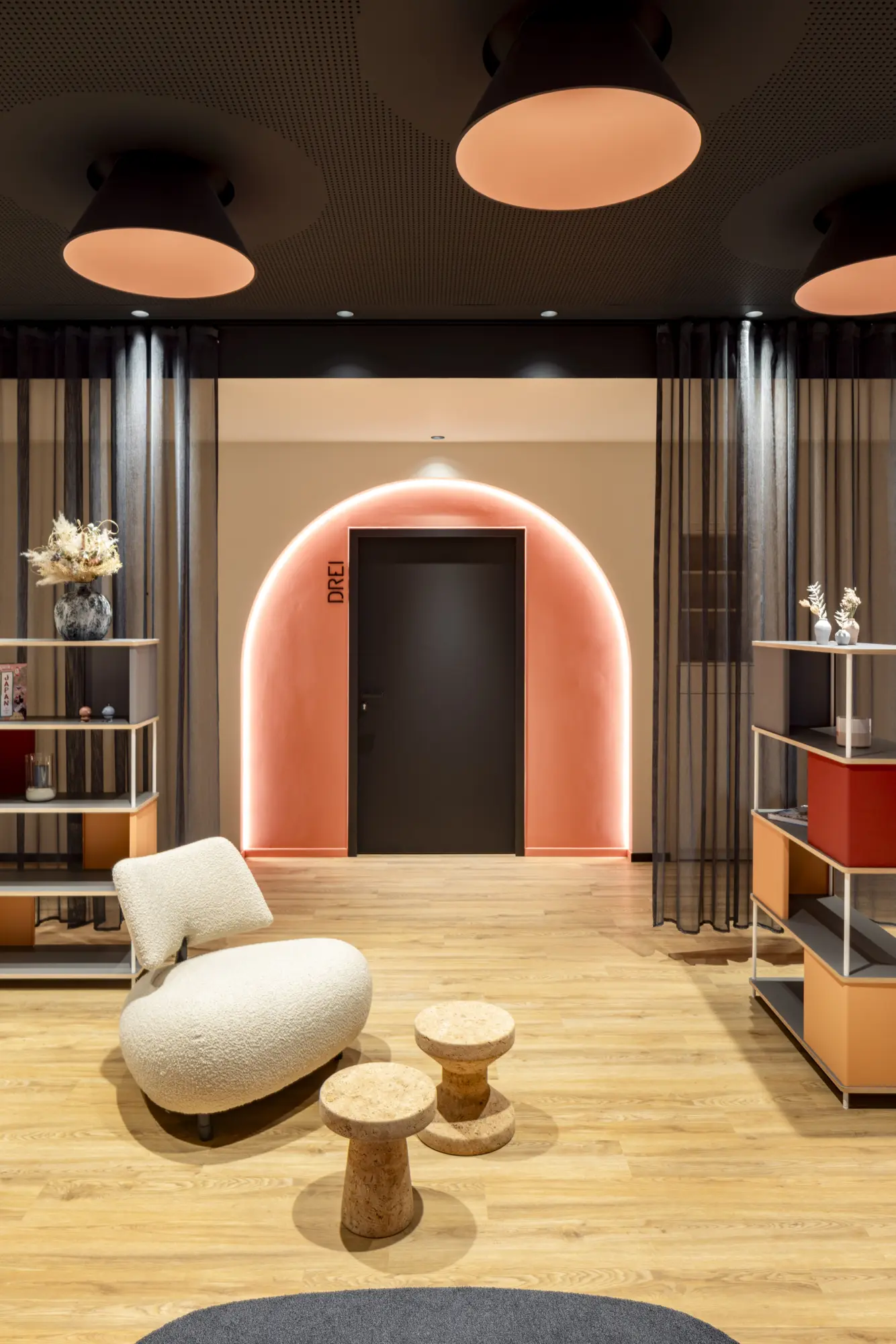 On 875 m², the project combines a dental practice for adults with a child-friendly area for young patients. A clear division into adult treatment, pediatric dentistry, and functional zones allows for a differentiated response to varying needs. The design creates a welcoming atmosphere with a high quality of stay. Organic forms, homely materials, and carefully framed visual connections define the spatial experience.