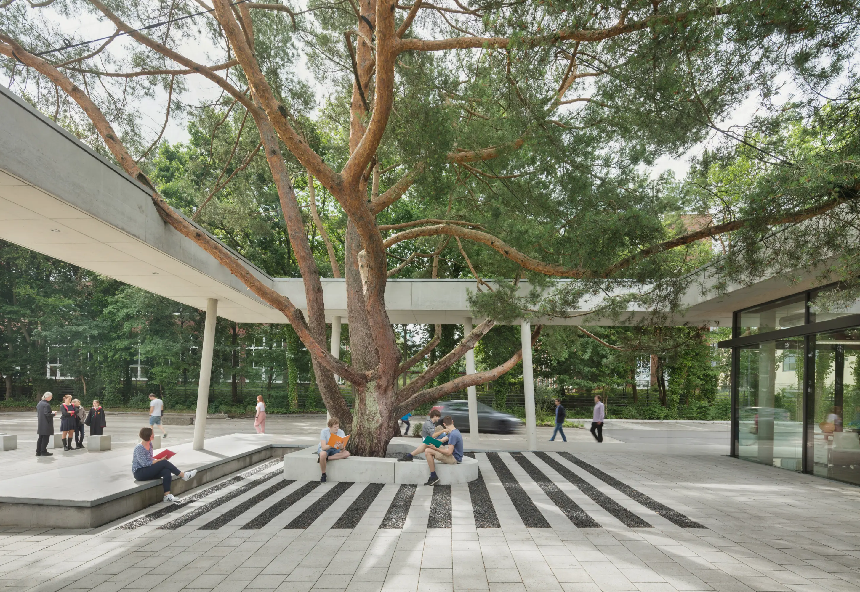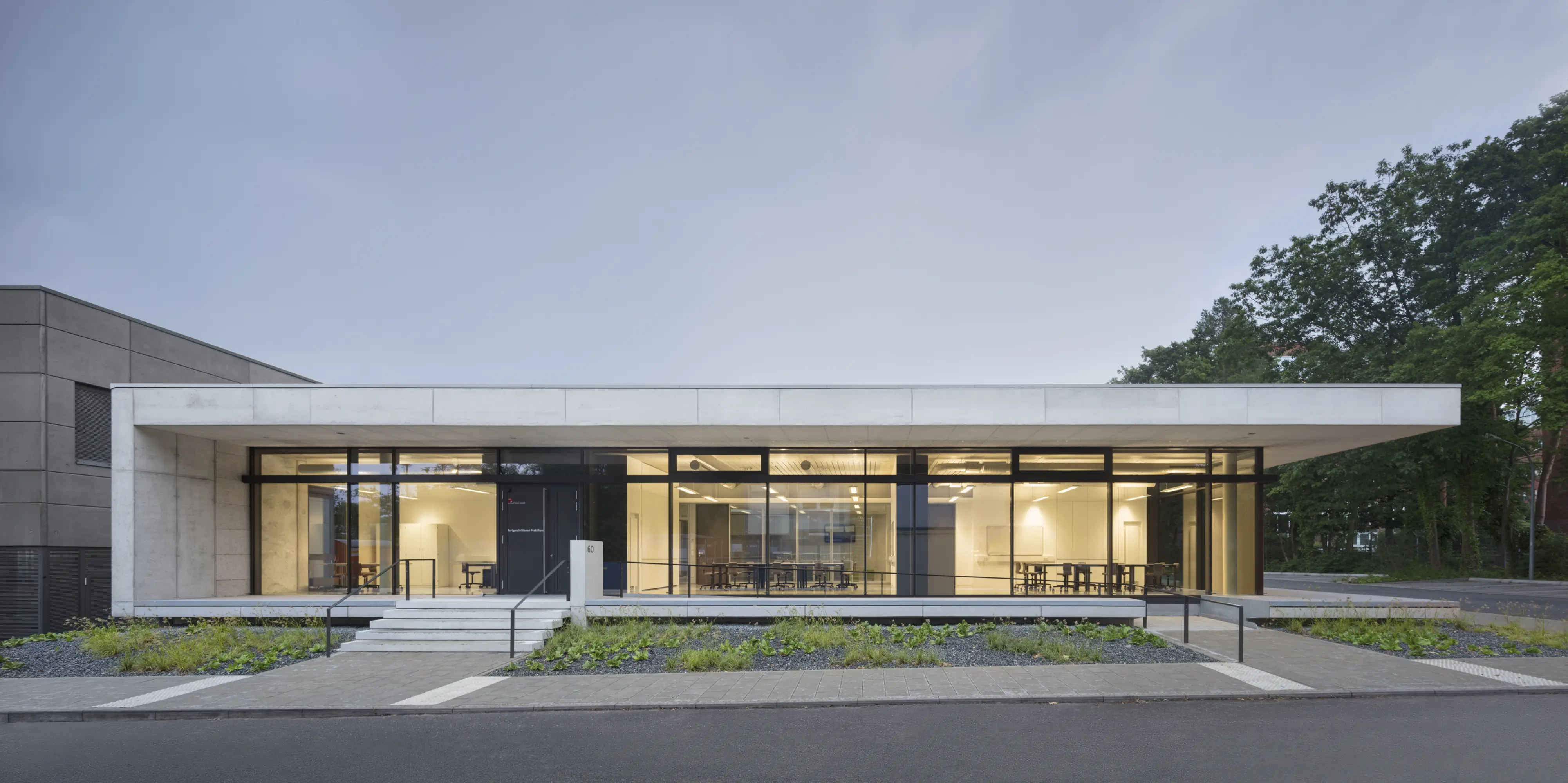 The ‘Light & Schools’ physics school laboratory at the University of Hamburg is a compact, ultra-modern pavilion at the entrance to the Bahrenfeld research campus. The generous glazing opens up the building to the public and invites exploration. The centrepiece is a modular laboratory and seminar area around a central room core. Two old pine trees have been integrated into the outdoor space. Sustainability is demonstrated by the extensive green roof and natural lighting (DGNB Silver) – an inspiring place for scientific education.