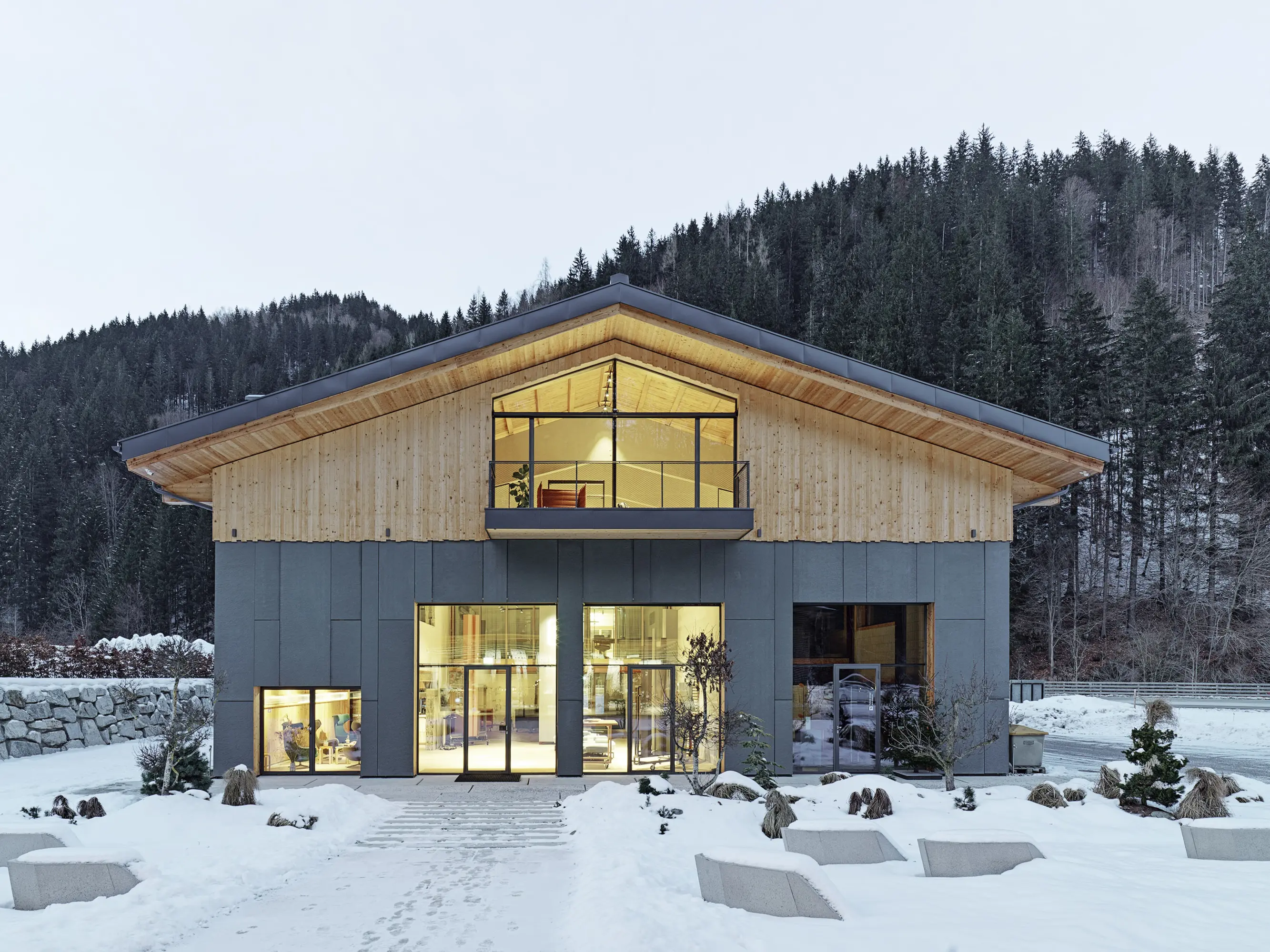A decommissioned bus garage was transformed into the heart of the new Rieder Campus. Not only the building structure but also many interior components were reused following the "reuse and recycle" principle. For example, an I-beam from 1958, 150 t of recycled steel beams, floor coverings, grass pavers and much more were given a second life. By building within the existing structure, Rieder saved around 1,000 t of CO₂ compared to new construction. Genuine sustainability is reflected in the continued use of existing building features, thoughtfully reinterpreted in combination with contemporary materials. The result is an inspiring workplace.