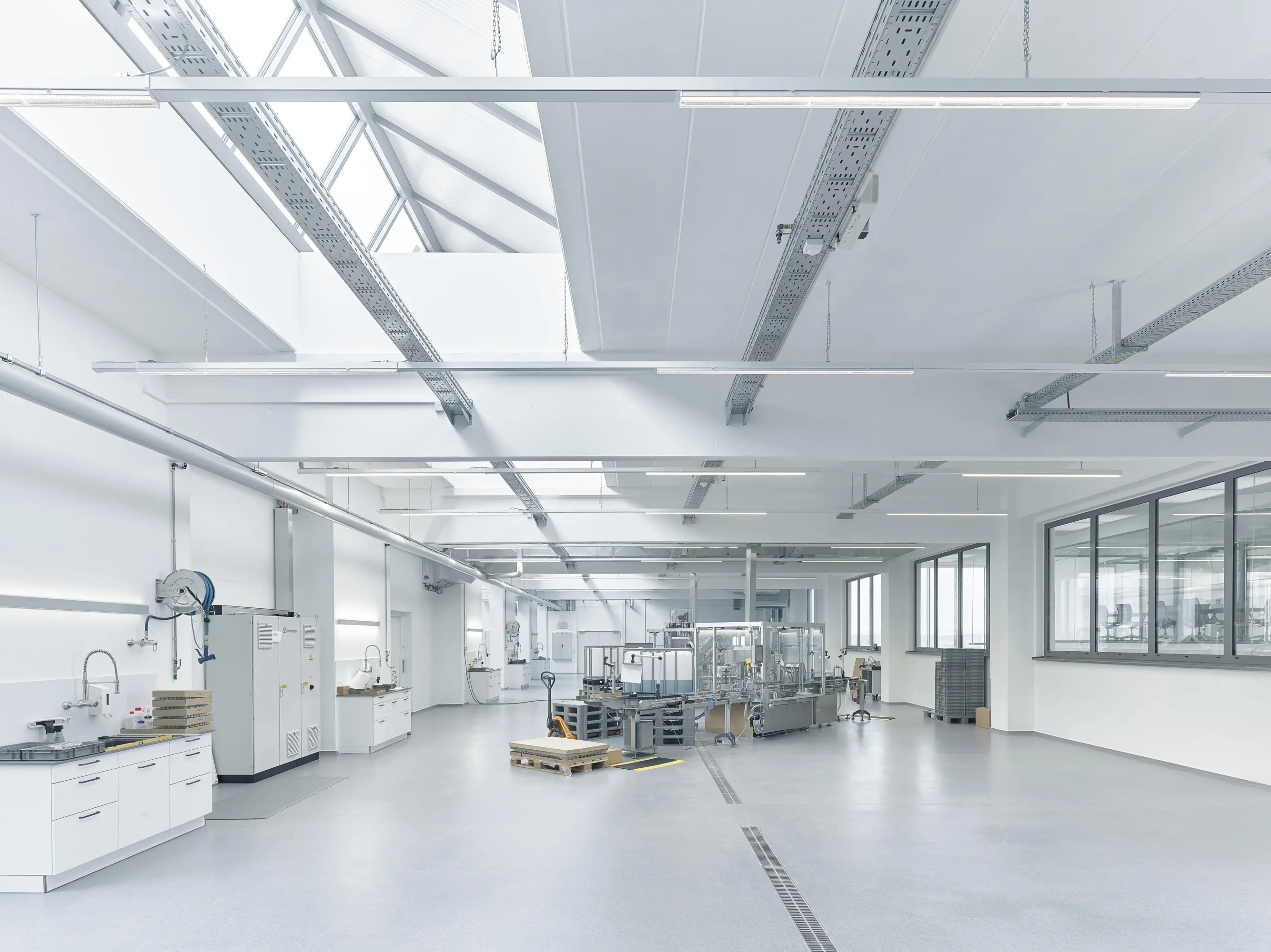 Now run by the third generation, syNeo cosmetics is experiencing strong growth. As the existing company headquarters had no capacity for further development, a sustainable and future-orientated company location was developed together with the Brunner family. The administration building with warehouse and production area combines modern working environments and the high hygiene standards of cosmetics production.
