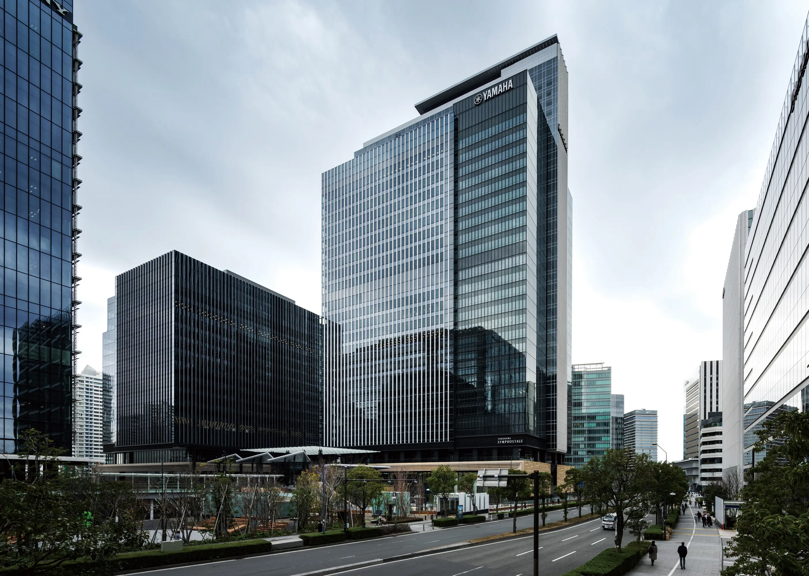 This is a complex with a total floor area of approx. 180,000m2 and connected to the pedestrian network, an important infrastructure linking central Yokohama and its surrounding areas. Located on a site intersected by two key pedestrian axis which connect the Minato Mirai district to surrounding areas. Historically disconnected, these pedestrian spaces are revitalized and interconnected through a multi-layered plaza and lively public facilities where people can gather during events and disasters.