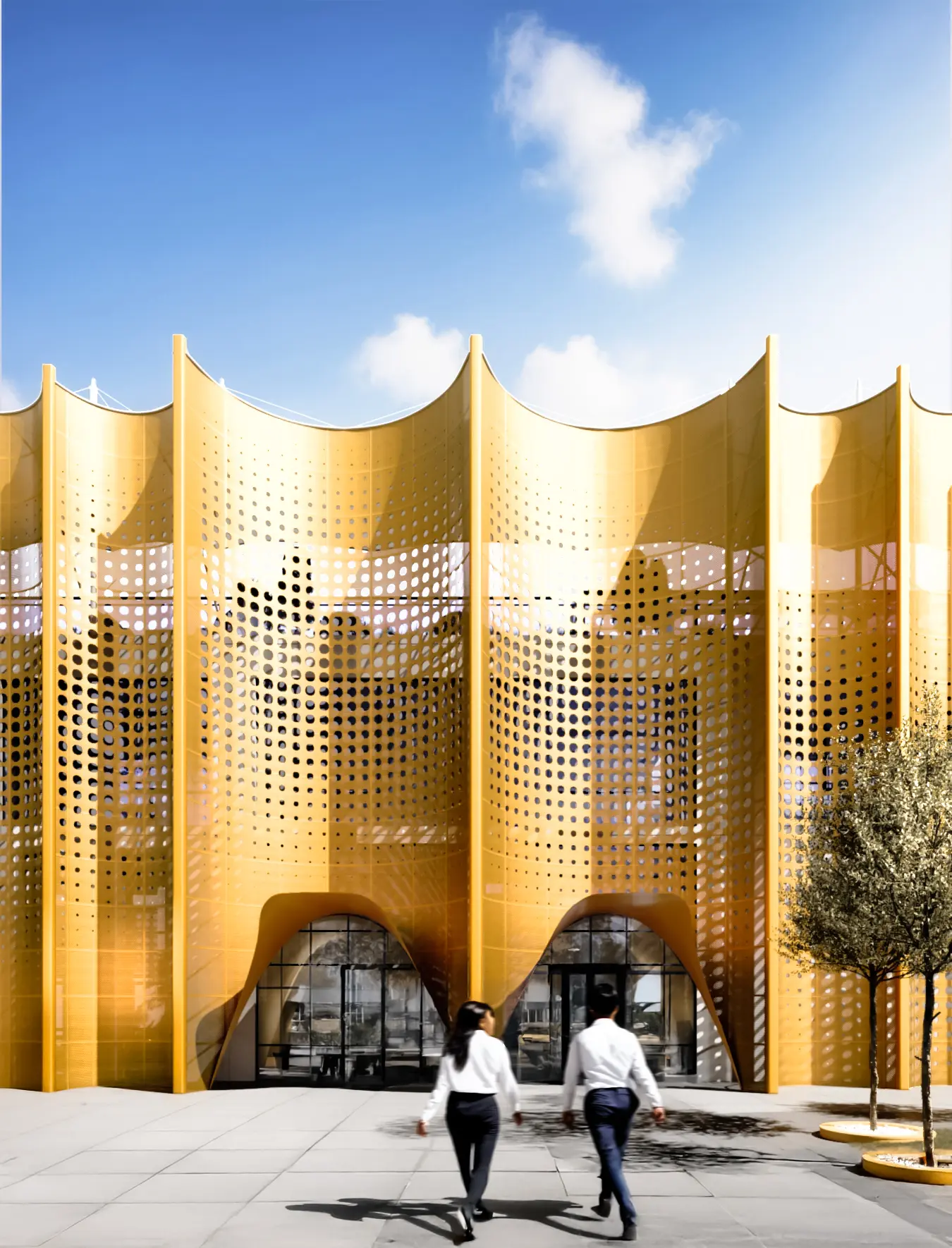 The Yupekchi Headquarters in Sakarchage, Mary, Turkmenistan, will enhance the work-life experience for employees, honouring the factory’s legacy as a leading beverage producer. Designed to foster collaboration, it features flexible workspaces, community areas, and outdoor environments. Inspired by the Turkmen word for silk, “ýüpek,” the architecture reflects local sericulture and Silk Road heritage. An engineered ventilated façade addresses desert climate challenges, and intricate patterns draw from the Gyz Gala fortress. This innovative hub will serve as a local landmark, enriching the community and supporting the company’s mission.