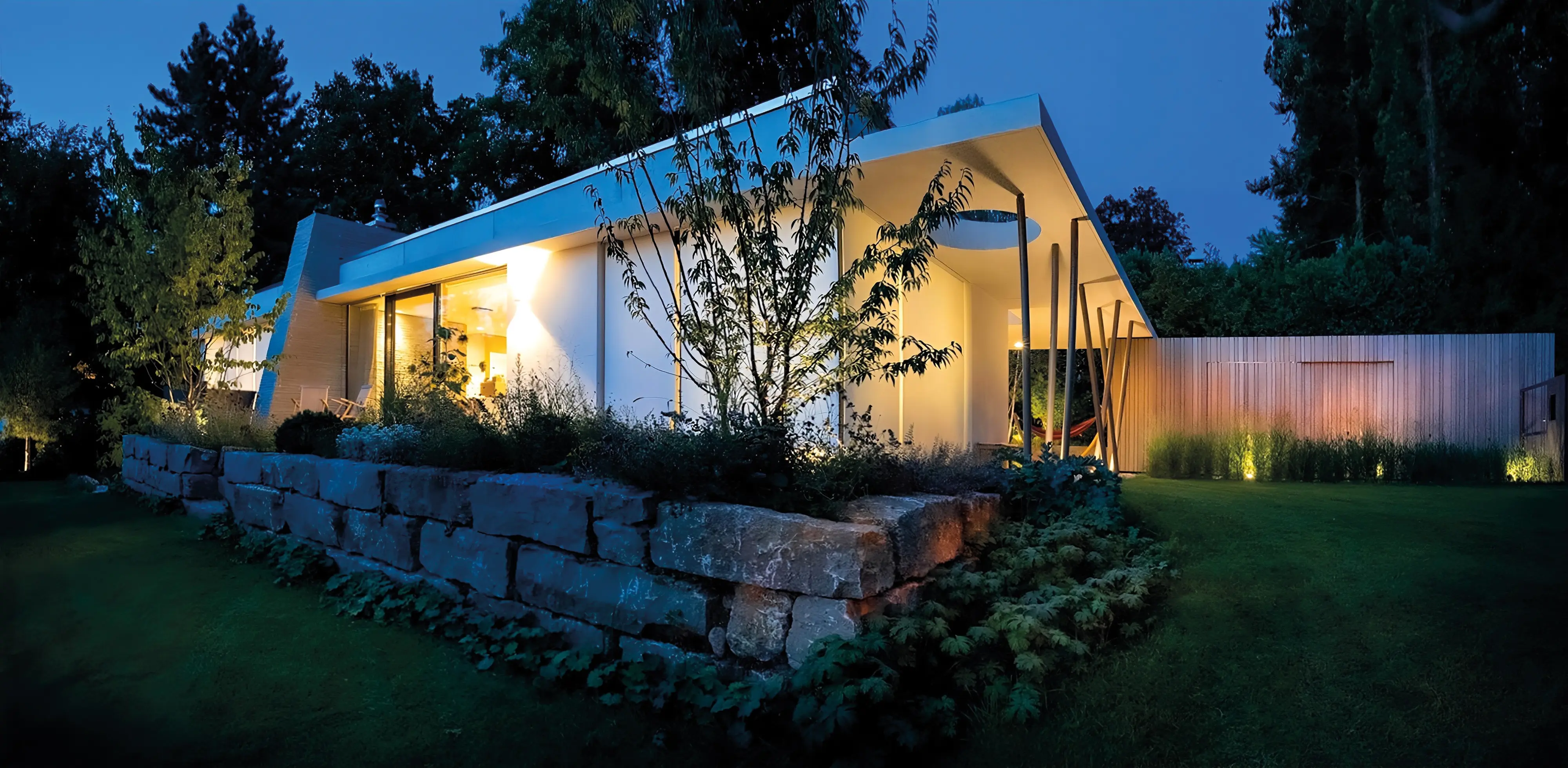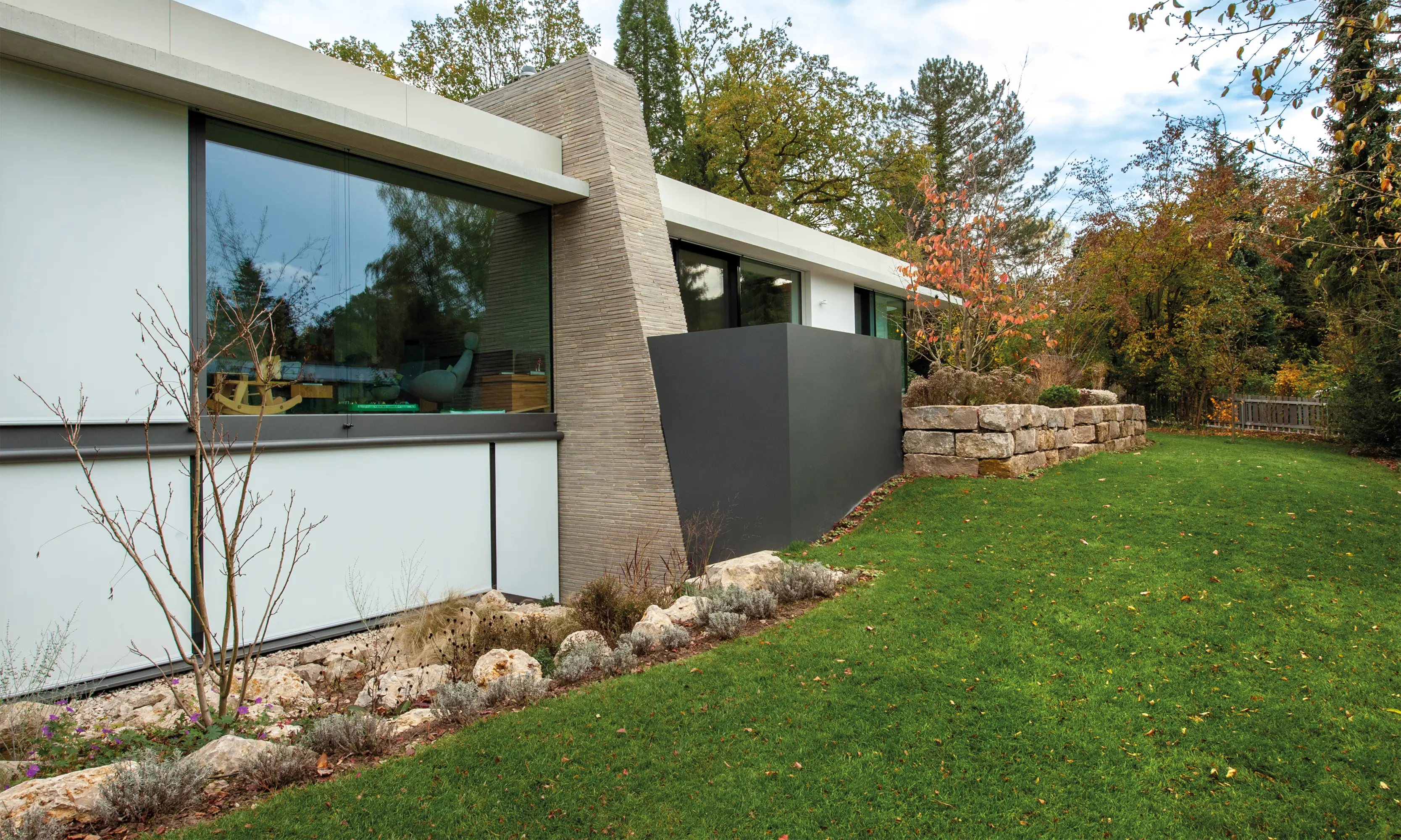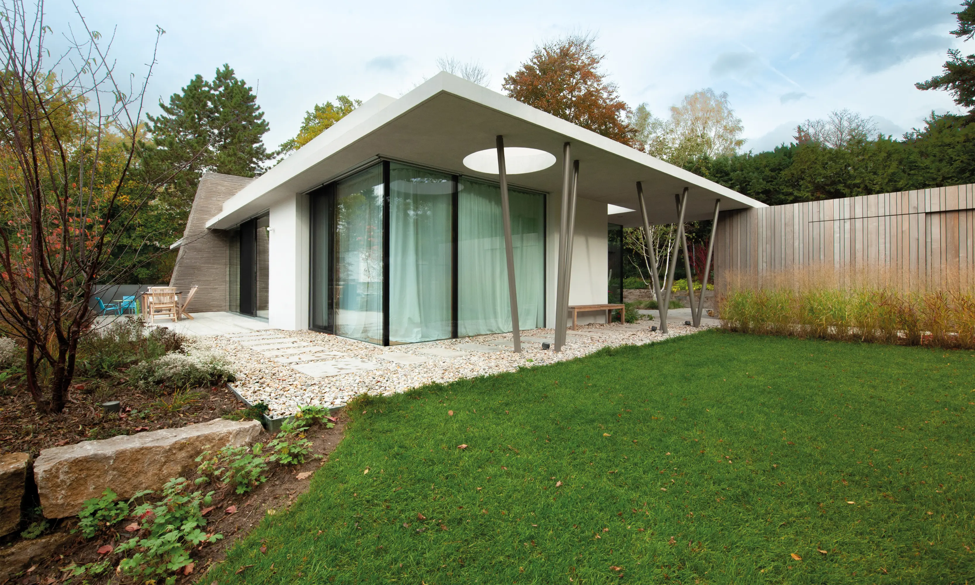 The elegant bungalow on the Burgberg in Erlangen is distinguished by its clear architectural language and the use of high-quality, sustainable materials. The building is closely connected to its specific site and topographical features. The delicate, widely cantilevering roof is supported by a series of angled columns. The entire architectural design fosters a harmonious dialogue between the interior and exterior. Innovative architectural elements with a functional and aesthetic design create an inspiring and practical living environment. The building is as unique as its residents.