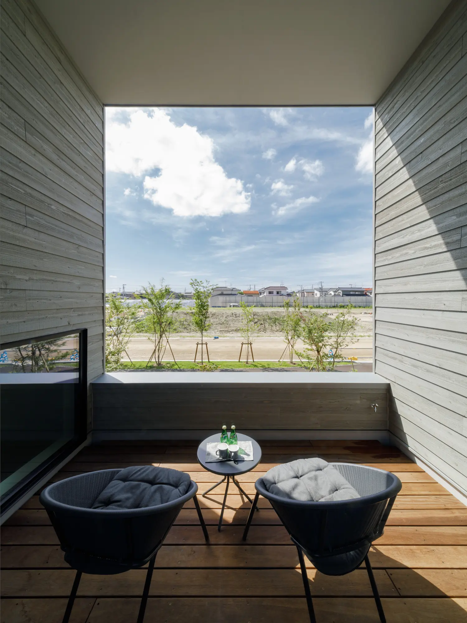 The project site is a new subdivision located in the suburbs. In Japanese residential areas, houses of similar size are built on evenly divided plots of land. In many homes, residents keep their curtains closed for privacy and security reasons. We sought to create a design that strikes the contradictory ideals of privacy and openness. In the centre of the building, we placed a skip-top terrace, which is at a different height from the interior floor. This terrace also acts as a screen from the outdoors, giving residents a sense of security and openness. This house will harmonize with the city and change the uniform streetscape.