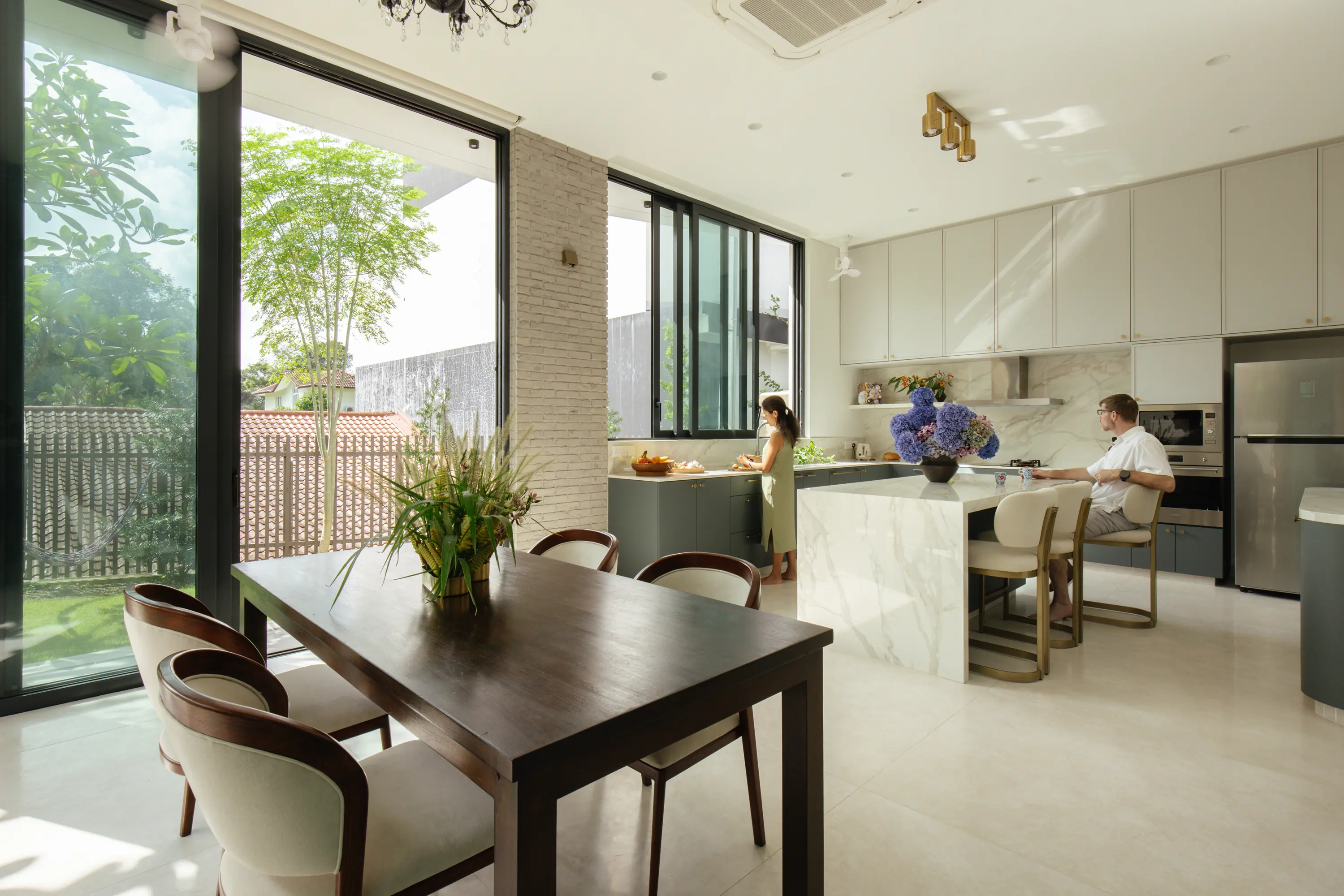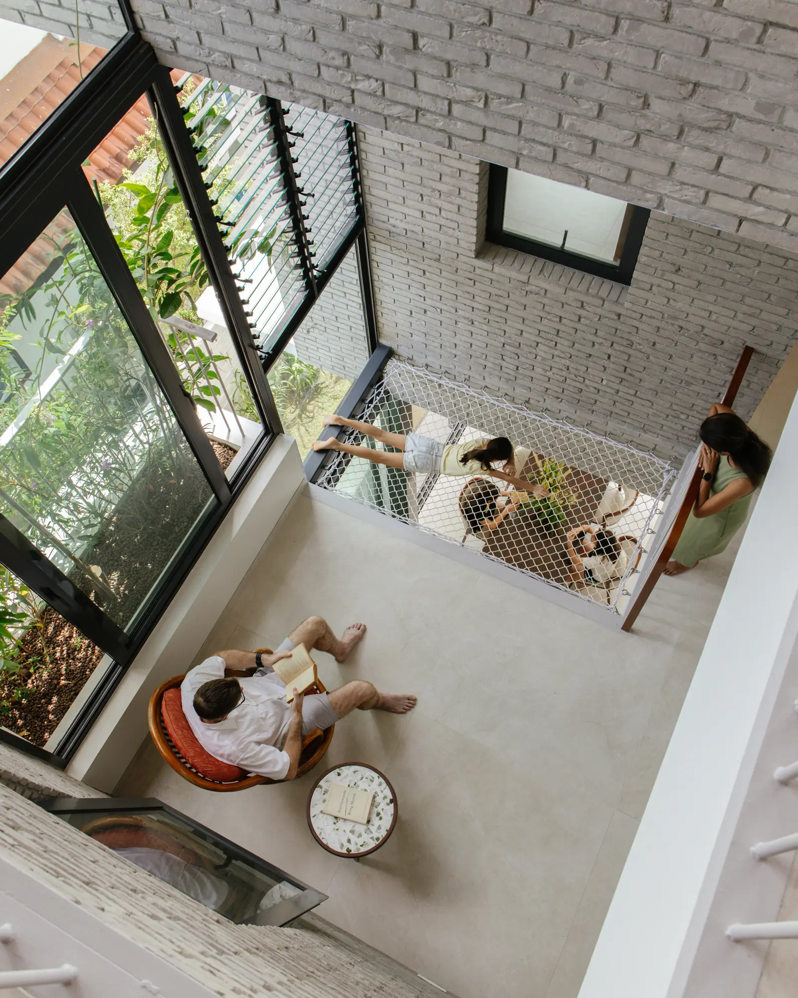 Linked Terraces sensitively adapts a single-storey semi-detached house by retaining the original front—preserving memories and embodied carbon—while adding a new three-storey rear extension to accommodate a family’s growing needs. Guided by the concept of connecting: between past and present, family members, and indoors and outdoors, the design centres on a staggered three-storey void that draws light and breezes deep inside while linking gathering spaces. Planted terraces filter daylight, diffuse natural scents, and appear like a garden cascading downwards. Passive design features allow the home to achieve net-zero standards.