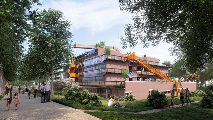 ‘Groene Afslag’ has transformed a former listed Dutch military school into a circular icon. For the transformation of the interior and exterior, materials and products were reused according to the Kintsugi principle – components from different sources are converted into a new context. An unconventional transformation process in which we externally harvested what was available, internally reused what was possible and newly acquired only where necessary. The redesign transforms the former military school into a breeding ground where the circular economy mindset can be experienced, touched and seen at all levels.