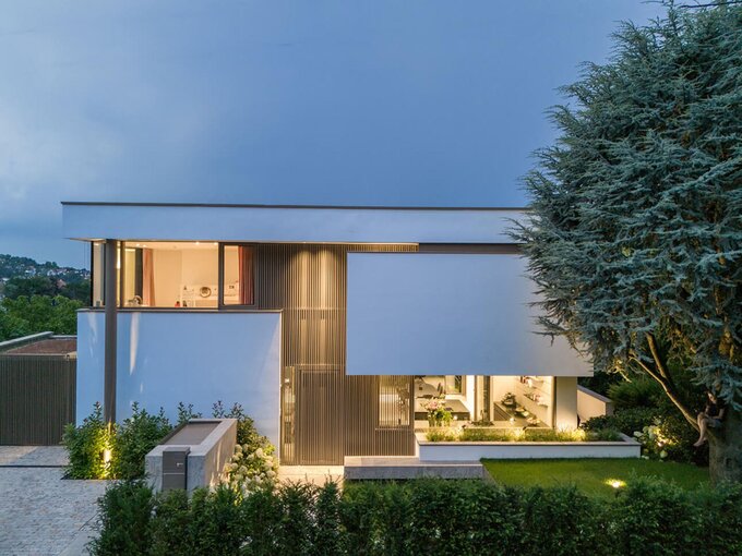 The idea was to create a genuine connection between inside and outside, living space and garden, neighbourhood and family life. The house in Stuttgart's half-height location surprises at first glance with its unusual openness. From the entrance level at street level, an unobstructed view of the garden and the magnificent panorama of the city opens up as soon as you enter through the spacious dining area. The first floor is divided into two levels, with the living area slightly lowered to provide direct access to the terrace and garden.