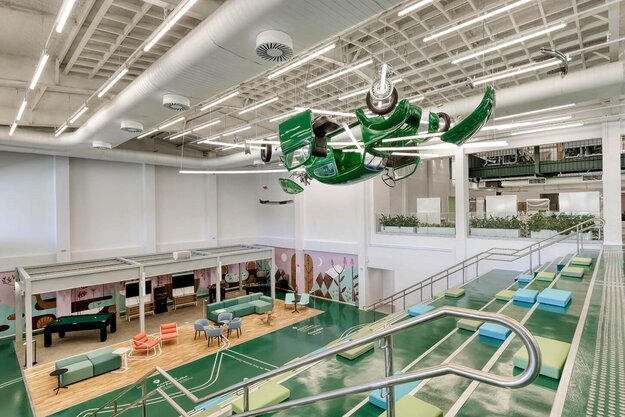 The modern office building »Localiza Labs« was created by the conversion of five former industrial halls from the 50s and impresses with a friendly, open and bright space concept. The highly creative design of the relaxation and communal areas creates a harmonious working environment that underlines the need for a pleasant working atmosphere. The LEED-Platinum certification proves the sustainability of the project.