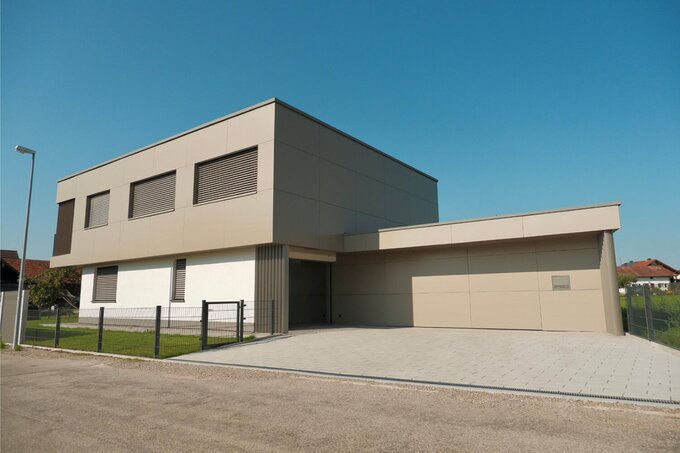 The private residential building presents itself puristically clear and straight-forward with an elegant proportioning of the volumes. The suspended aluminium facade in bronze tones and the specially designed slats create fascinating light and shadow plays. The use of energy-efficient materials and intelligent building technology is an impressive addition to the minimalist concept. Offset cubes emphasize the elegant design language.