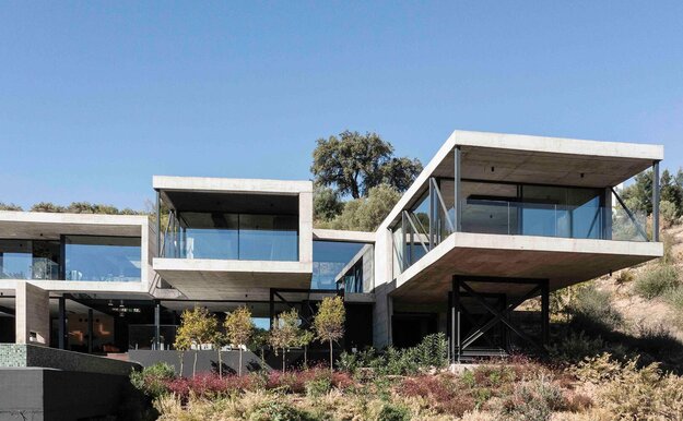 The»Villa Flotante« blends harmoniously into the natural surroundings. The design combines different cubic volumes with outstanding structures that are cleverly connected. The single-family home achieves a balance between functionality and environmental awareness by cleverly interacting with the topography and maximizing the view of the Mediterranean.