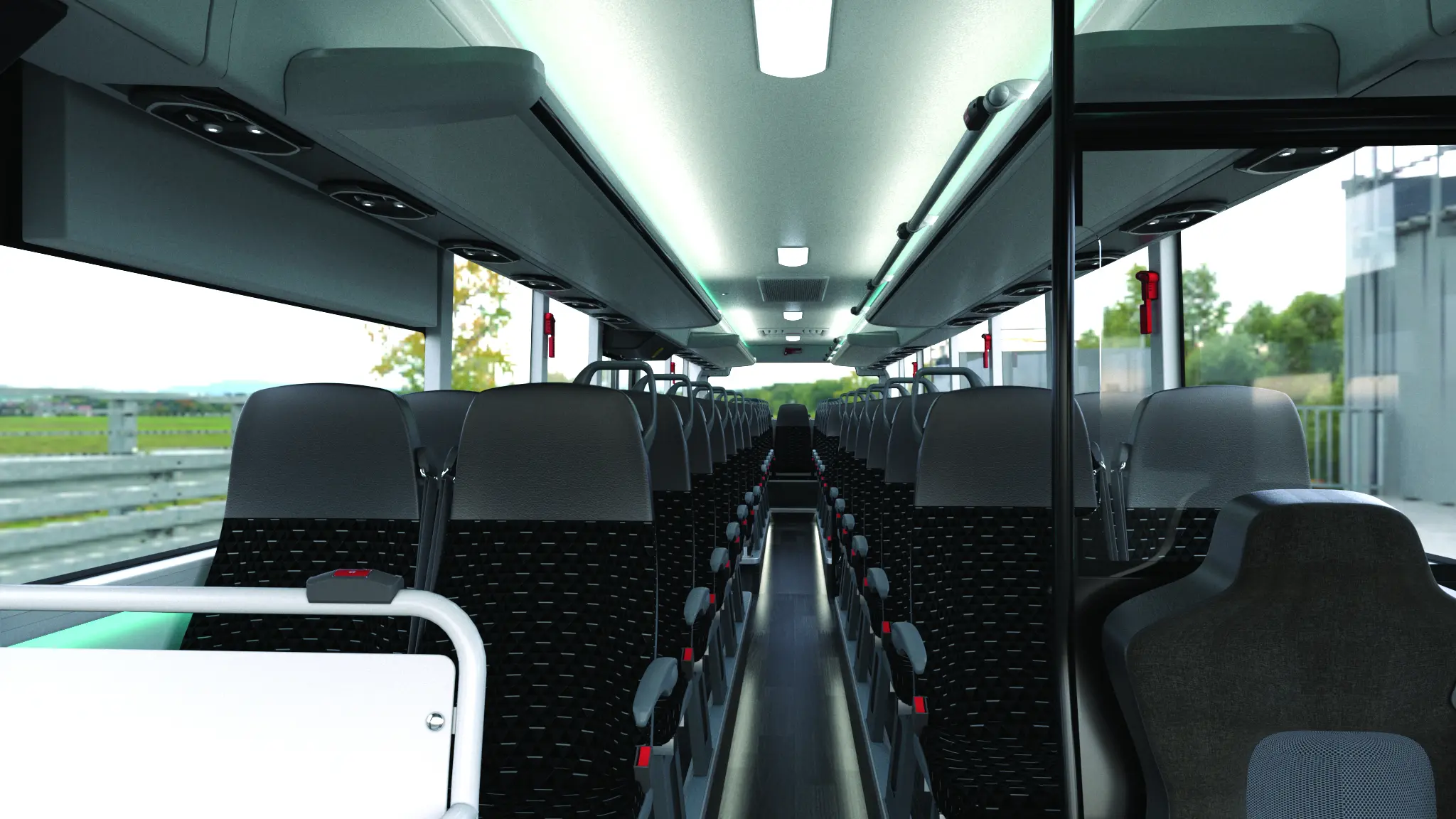 The all-electric B12.b HF sets new standards in European intercity road transport. Its aerodynamic design combines efficiency and elegance. The driver-centric cabin with intuitive interfaces ensures a relaxed, safe working environment. Inside, passengers can expect a modern lounge ambience: a wheelchair area with a lift, slim seats, ambient lighting, and an active damping system ensure maximum comfort. With space for 57 passengers, 125 suitcases (20 inch), a range of up to 650 km, and a charging time of under 1.5 hours, the B12.b HF combines sustainability with an exceptional travel experience.