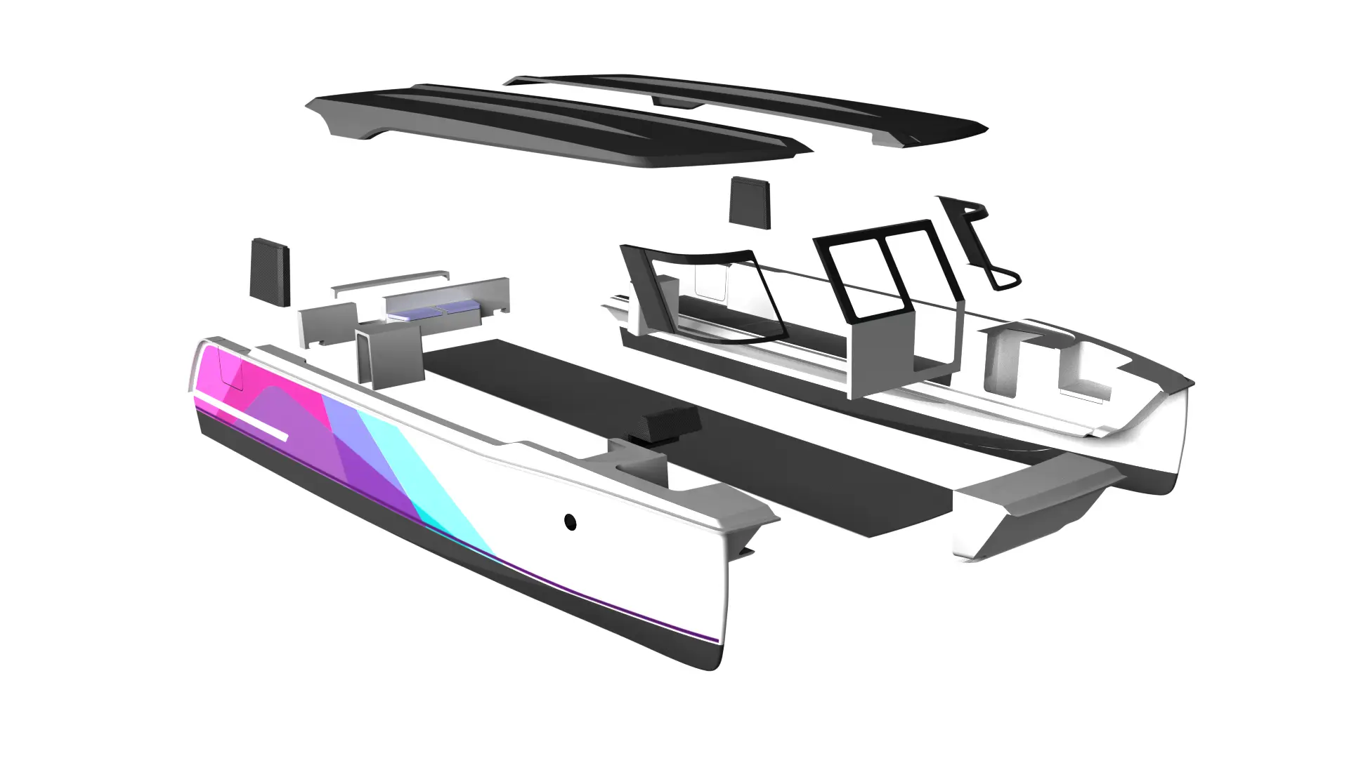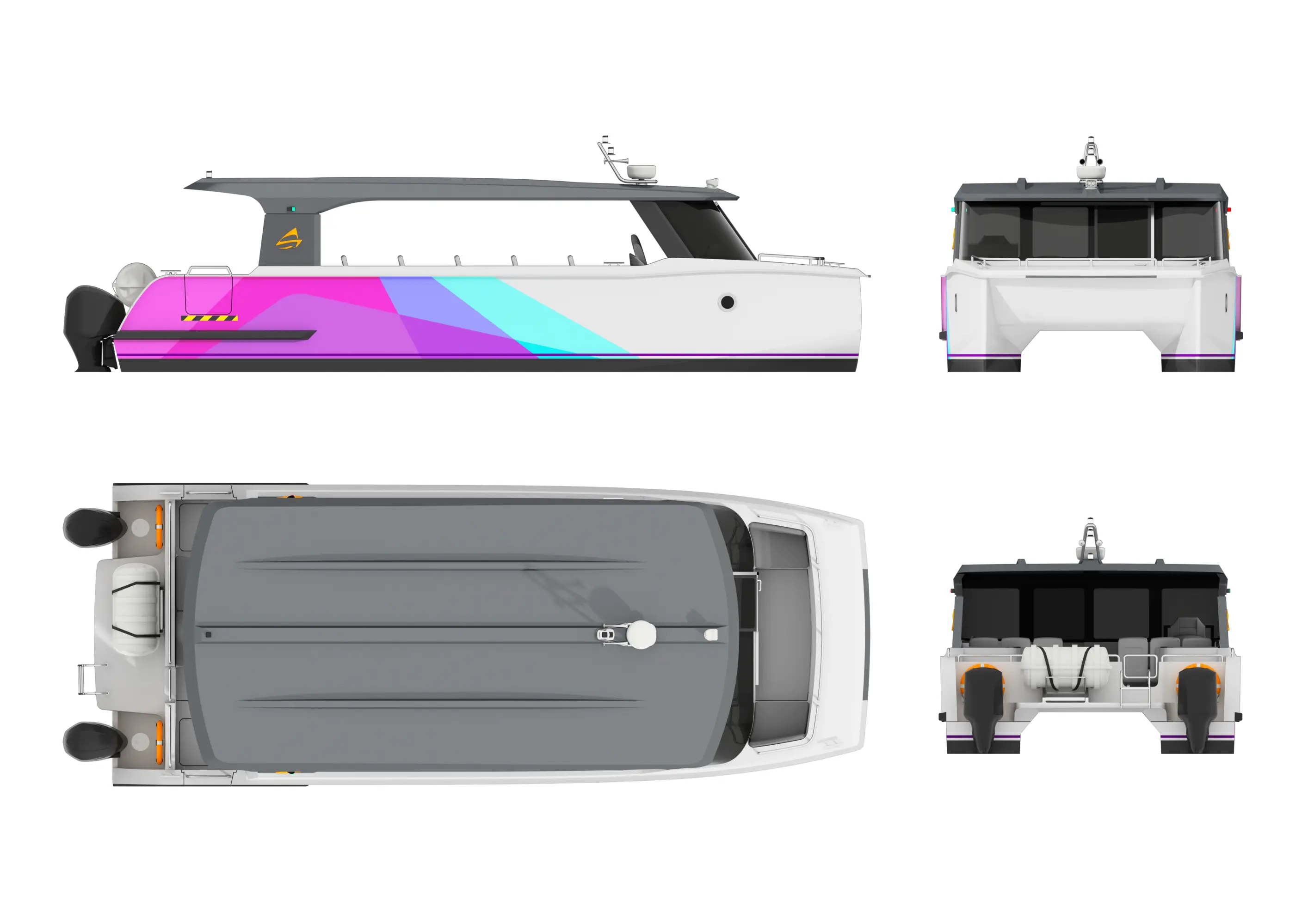 The idea of the project is a unique transportable catamaran, ships in two 40’ containers, designed for mass production in composites, affordable cost for business, with options of propulsion system, fully certified for passenger transportation.