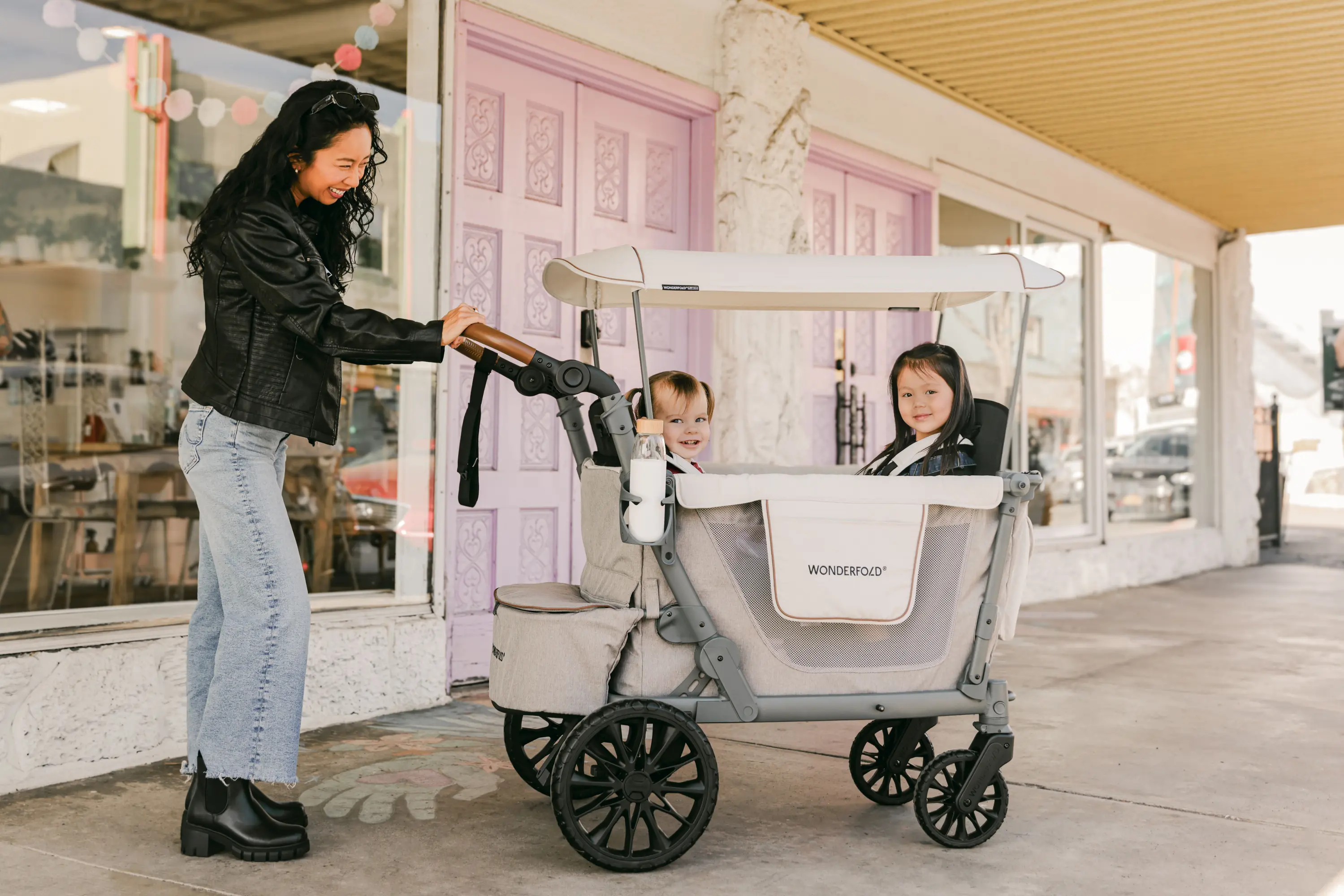 Meet the WonderFold L Series Stroller Wagon—designed to make family outings smoother, easier, and more stylish. With its wide-open side entry, kids can “hop in - hop out” independently, giving them freedom while you enjoy a hassle-free experience. The elevated seats not only give little ones a better view, but pair with a secure harness system to keep them safe and comfortable on every ride. Built with a sleek frame and sporty all-terrain tires, the L Series glides effortlessly across any surface. Available in two- and four-seater options, it’s a proud winner of the 2025 iF DESIGN AWARD for innovation and thoughtful design.
