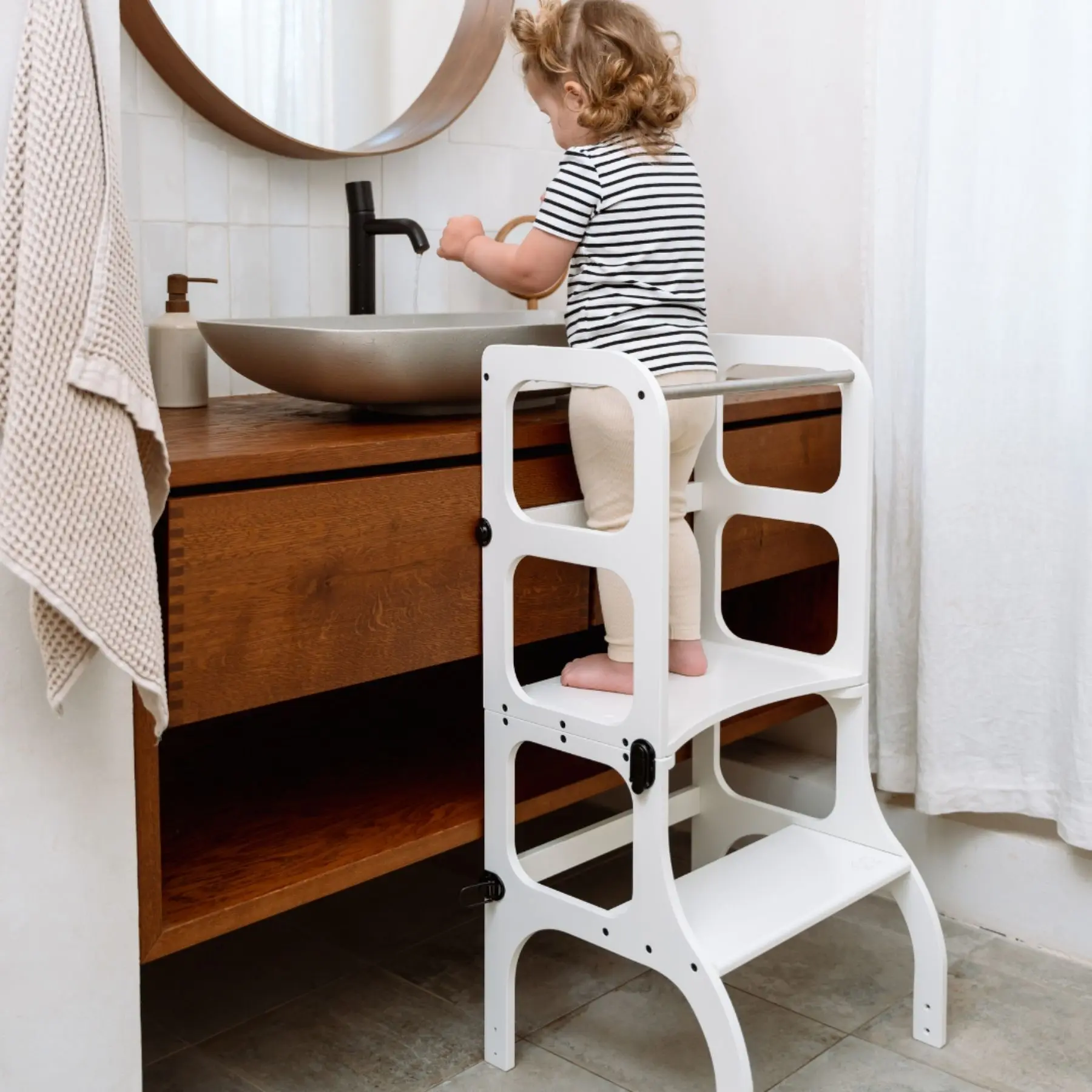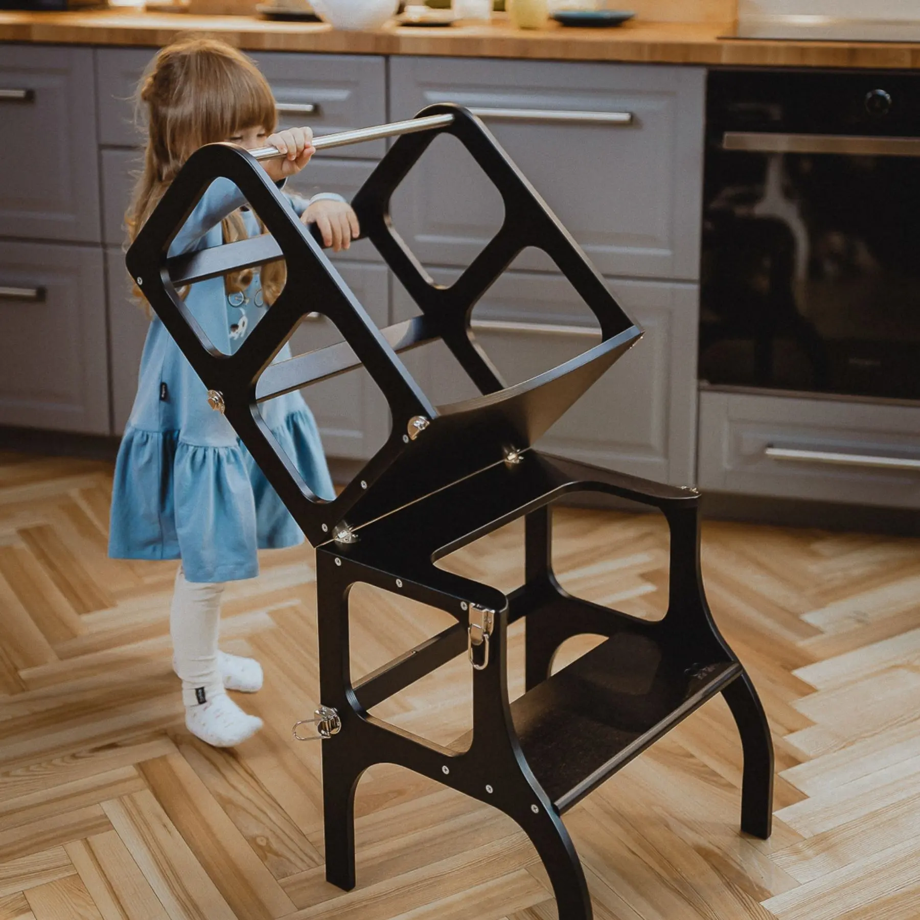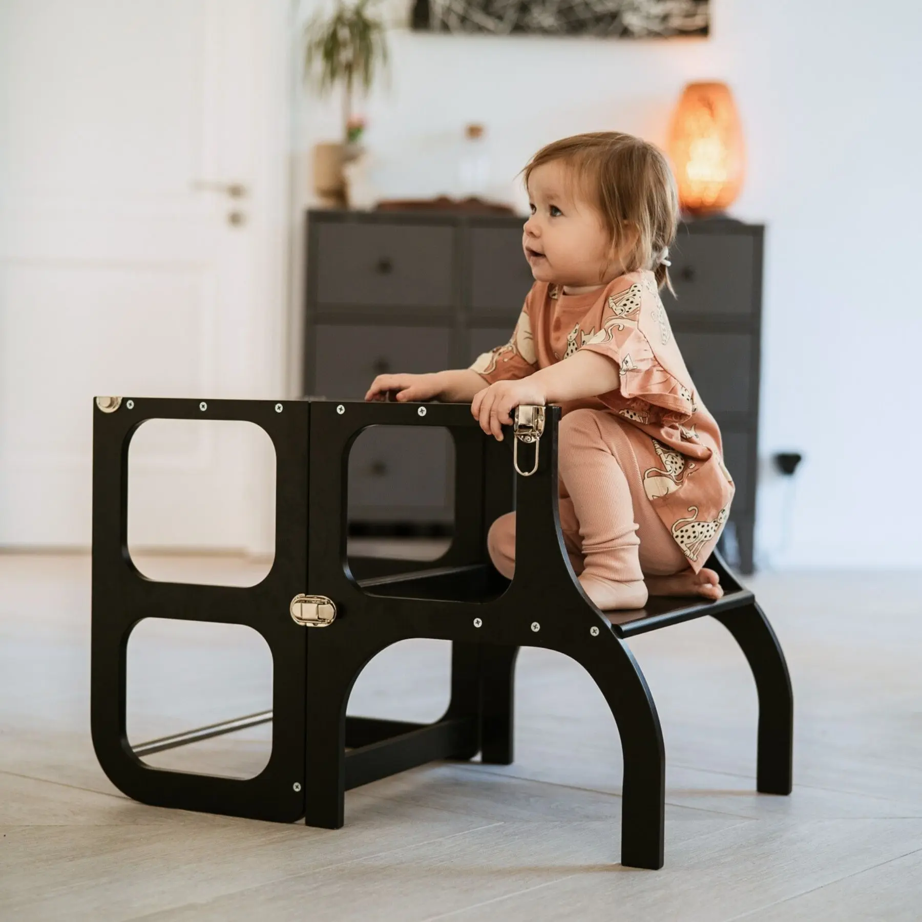 STEP'n'SIT® is a beautifully designed, innovative, and multifunctional helper tower that transforms into a table and chair in seconds — supporting a child’s independence from toddlerhood through early years. With add-ons like a drawing blackboard, pencil pocket, safety net, and support legs, it grows with the child and adapts to everyday family life. Crafted from sustainable Baltic birch plywood, manufactured in a family-owned business, it brings calm to busy households by keeping little ones engaged, safe, and involved. Designed to support both children’s development and parents’ peace of mind, STEP'n'SIT® is a parenting must-have.