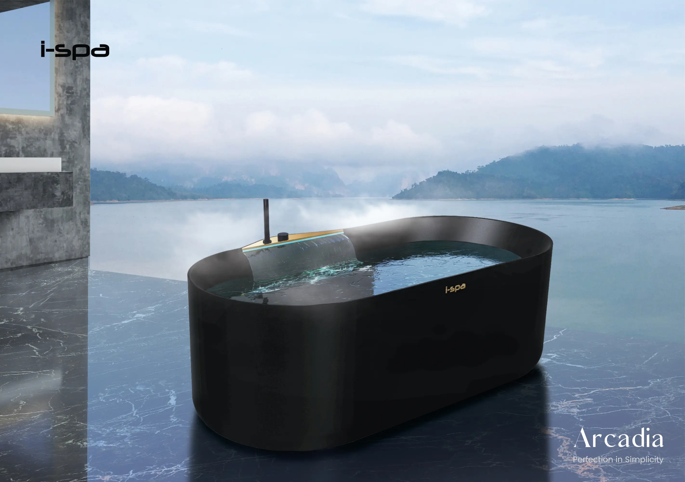 Arcadia is a minimalist bathtub featuring a smooth, elegant curved design that seamlessly blends simplicity with hidden luxury. Crafted as a single piece, it offers complete functionality while maintaining a sleek aesthetic. Unveil its special features—a soft waterfall for deep relaxation, aromatherapy mist, and chromotherapy lighting to enhance your experience. Personalize Arcadia with premium materials, selecting finishes for the waterfall cover, bathtub texture, faucet styles, and integrated shelf. A perfect combination of style, function, and comfort for your ideal space of happiness.
