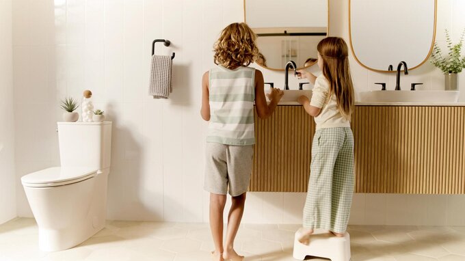 Easily keep the bathroom sink clean with the Aspirations 8" Widespread Pull-Down Swivel Bathroom Faucet with dual spray from American Standard. Smooth pull-down functionality extends to reach every corner of the sink to quickly rinse away toothpaste and grime. Swivel motion allows for complete clearance and access to the sink. Seamlessly switch between powerful stream & gentle spray functions for a more efficient bathroom routine. These simple yet modern updates allow you to spend less time cleaning the busiest parts of your home.