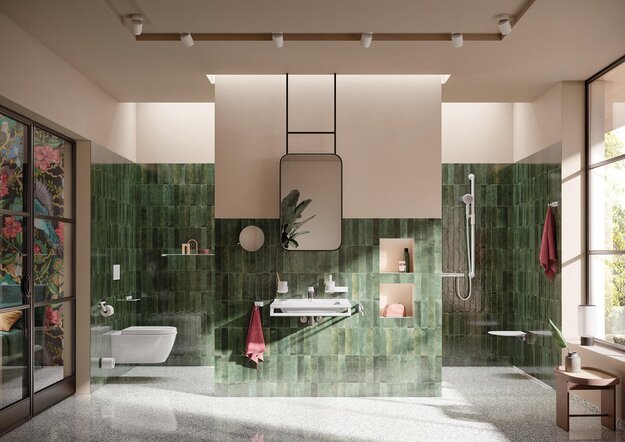 The sanitary system impresses with its clear, square design language, setting timeless accents. The combination of various materials and colors allows for flexible adaptation to diverse architectural settings. »HEWI System 900 Q« integrates seamlessly into different environments, offering a cohesive design solution.