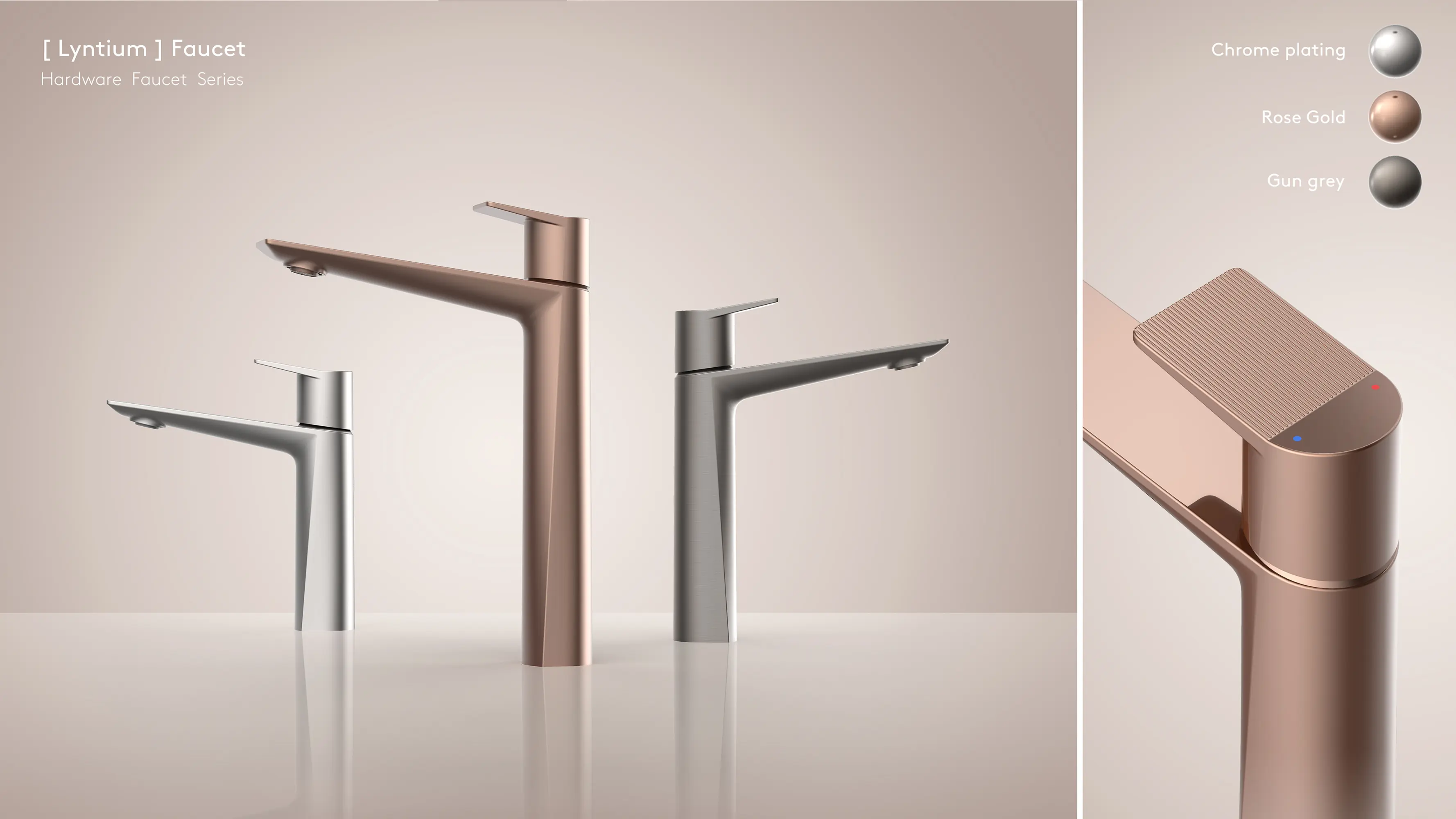 The Lyntium Faucet Series responds to society's call for bathroom products that blend "functionality and aesthetics," as faucets are increasingly seen as decorative space elements amid consumption upgrades. Its 3D sculptural form, shaped by geometric cuts and curved transitions, pairs with optimized spout angles via fluid dynamics for beauty-utility balance. Its unified design language supports both in-wall and conventional installs, fitting diverse bathroom styles with a blend of strength and elegance. Guided by "redefining bathroom aesthetics," it turns faucets into visual highlights, offering a unique premium market solution.