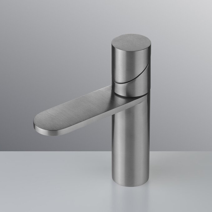 An inclined plane to open the water. With just a little pressure of the fingers to slide the control, an unconventional yet intuitive and curious touch that spurs an immediate interaction with the object. To adjust the flow, press downwards or else towards the wall for the recessed products. The simple and refined mechanism represents a true fruitive innovation in the world of tapware.
