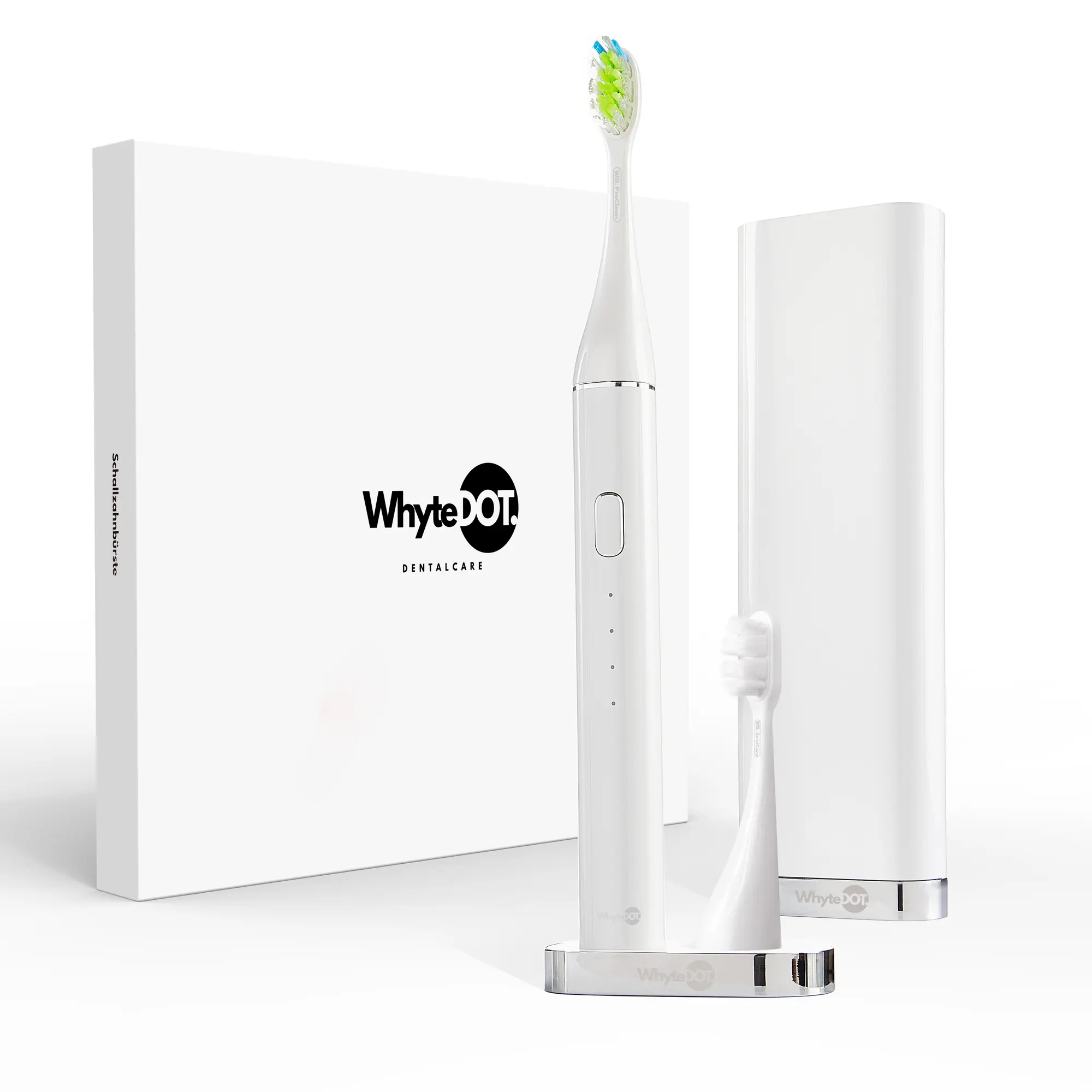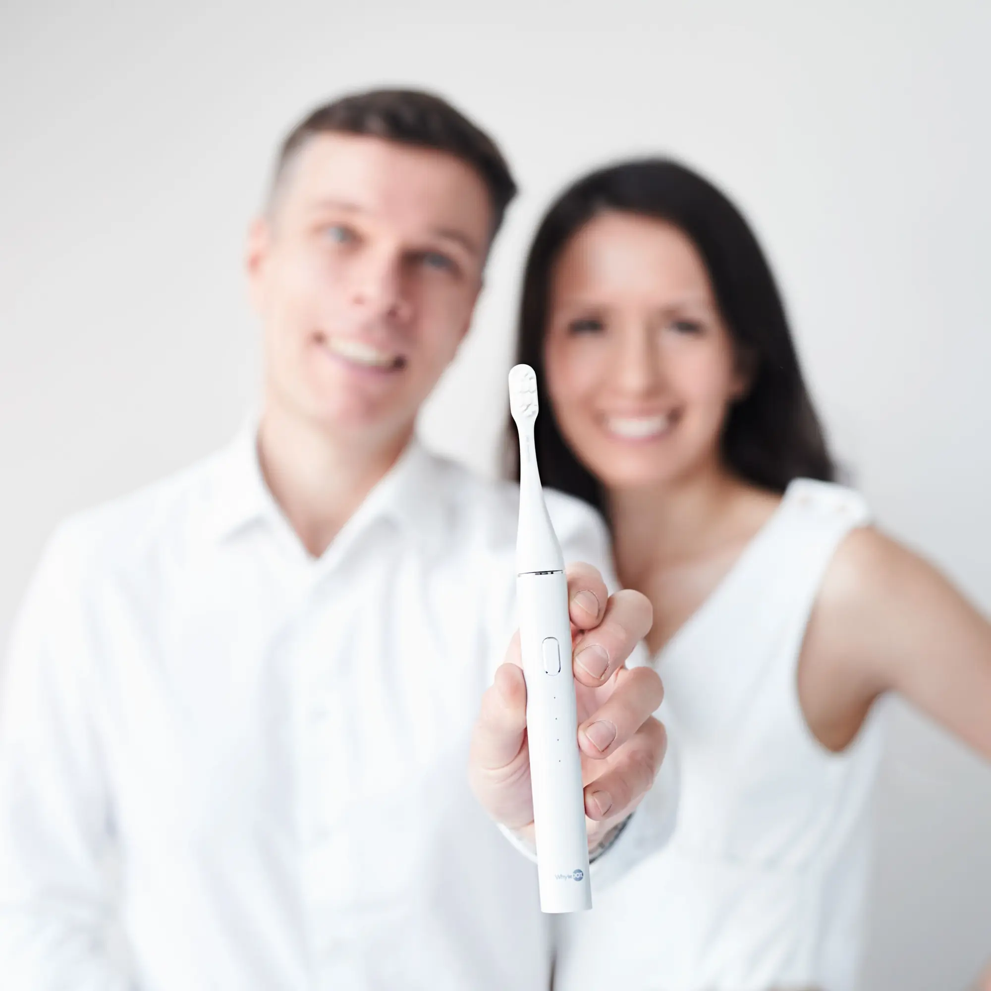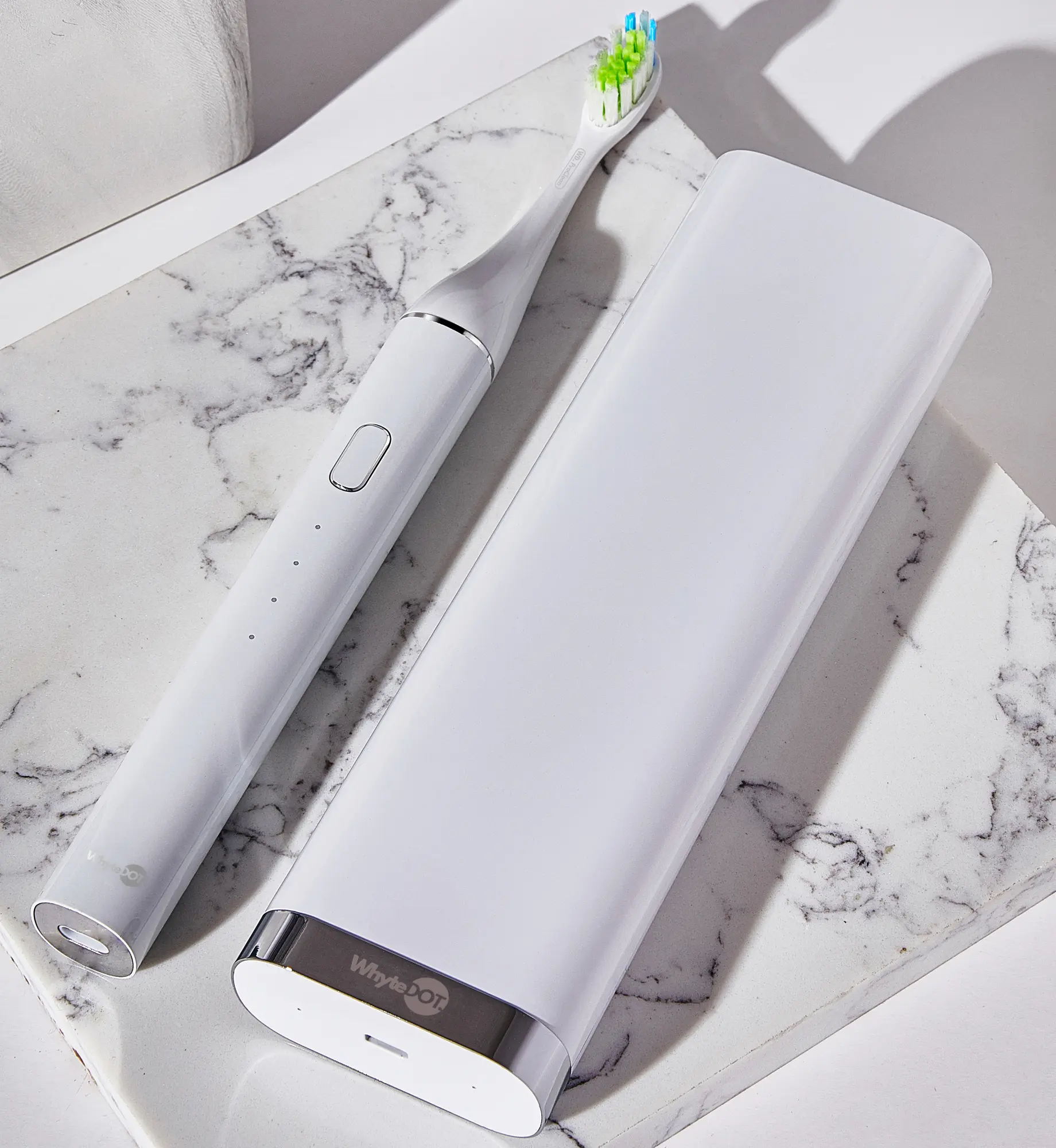 WhyteDOT. unites aesthetics and functionality. The WD.1 model features a sleek aluminium body, refined ceramic coating and a clear, minimalist design language. Up to 30% more compact, 50% lighter and significantly quieter (<50 dB) than conventional plastic models, it redefines comfort and efficiency. Free from harmful substances, its brush heads, low-vibration magnetic motor and three medically sound cleaning modes make it a care tool that combines dental expertise with sophisticated design.