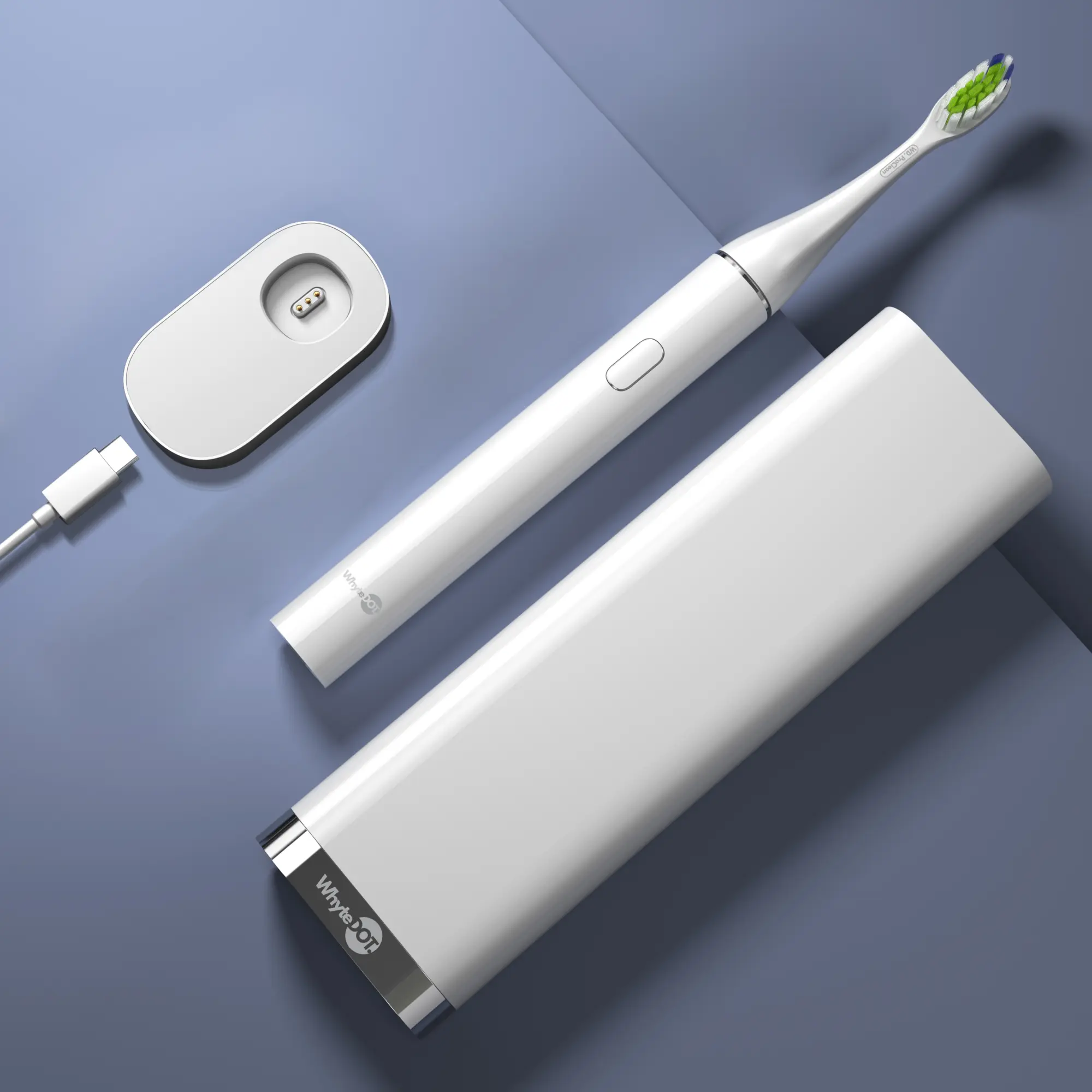 WhyteDOT. unites aesthetics and functionality. The WD.1 model features a sleek aluminium body, refined ceramic coating and a clear, minimalist design language. Up to 30% more compact, 50% lighter and significantly quieter (<50 dB) than conventional plastic models, it redefines comfort and efficiency. Free from harmful substances, its brush heads, low-vibration magnetic motor and three medically sound cleaning modes make it a care tool that combines dental expertise with sophisticated design.