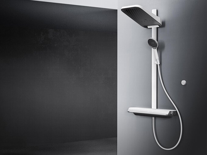 The shower set impresses with its clear, massive shapes and two-tone design that highlights functional areas. Particularly noteworthy is the intuitive touch panel with illuminated symbols, enhancing the user experience. The integrated "Hot Water Circulation Mode" allows precise temperature settings, ensuring a comfortable shower experience.