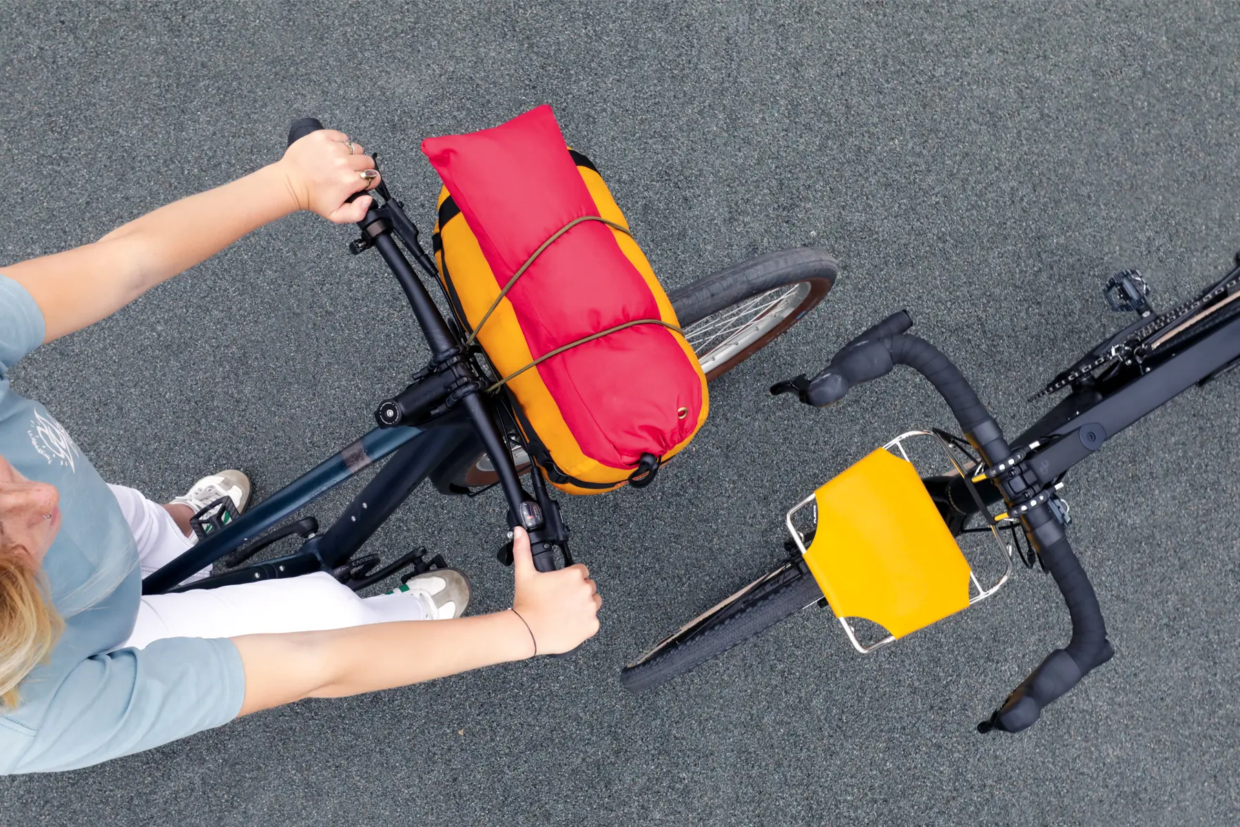 CargoMate is a compact front rack that fits almost any bike thanks to its universal mounting system. Installed in 30 seconds and removed just as quickly. Without any fixed parts, tools, or specific skills. For all handlebar diameters from 22.2 mm up to 35.0 mm. It is made of a one-piece stainless steel frame with six clever eyelets in the right spots and a quick-to-handle strap system for stowing all stuff easily. With its sleek design, 12 different colour variants, and a bunch of smart features, CargoMate cuts a fantastic figure on any bike and makes all your transports a breeze.