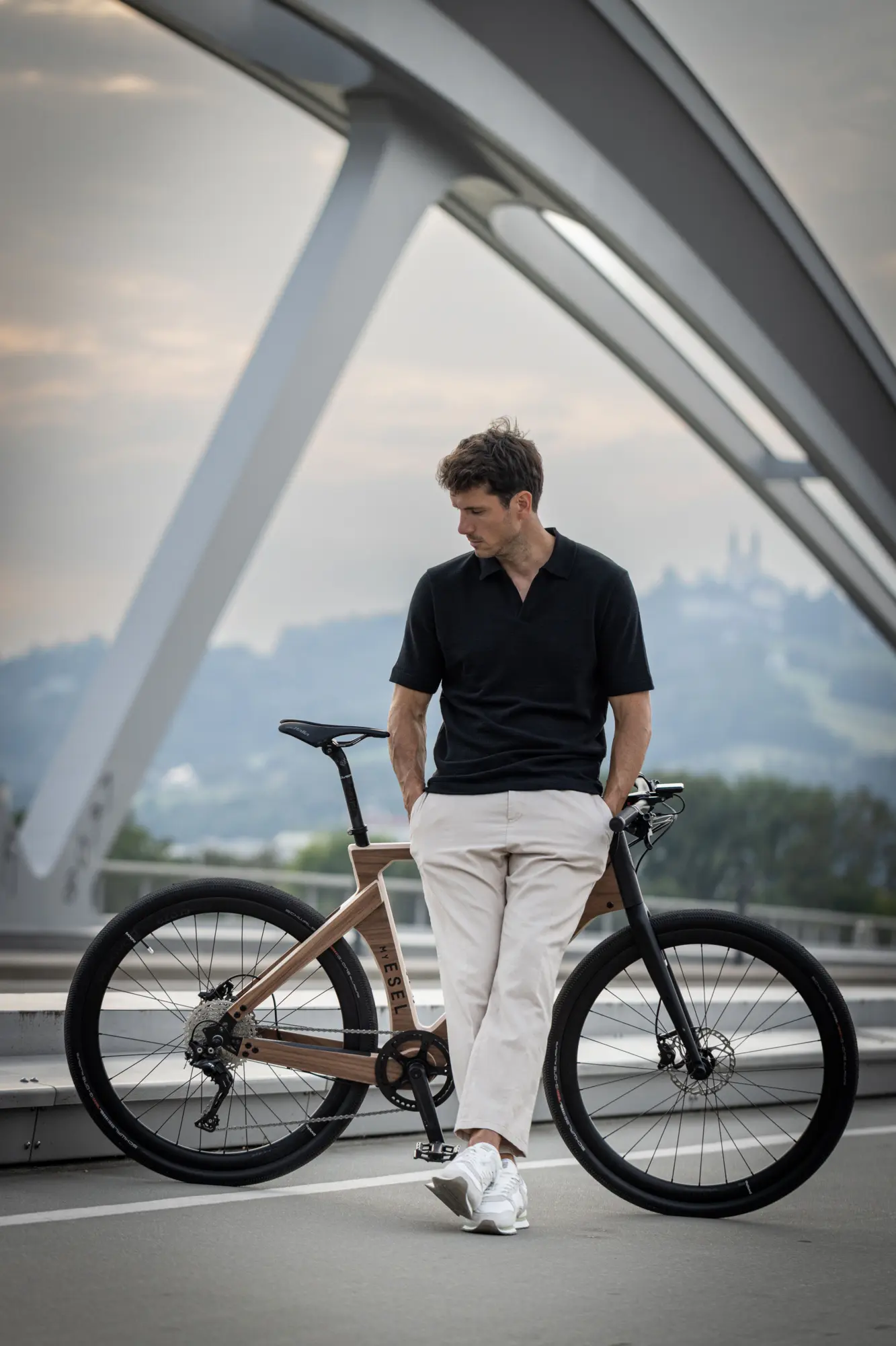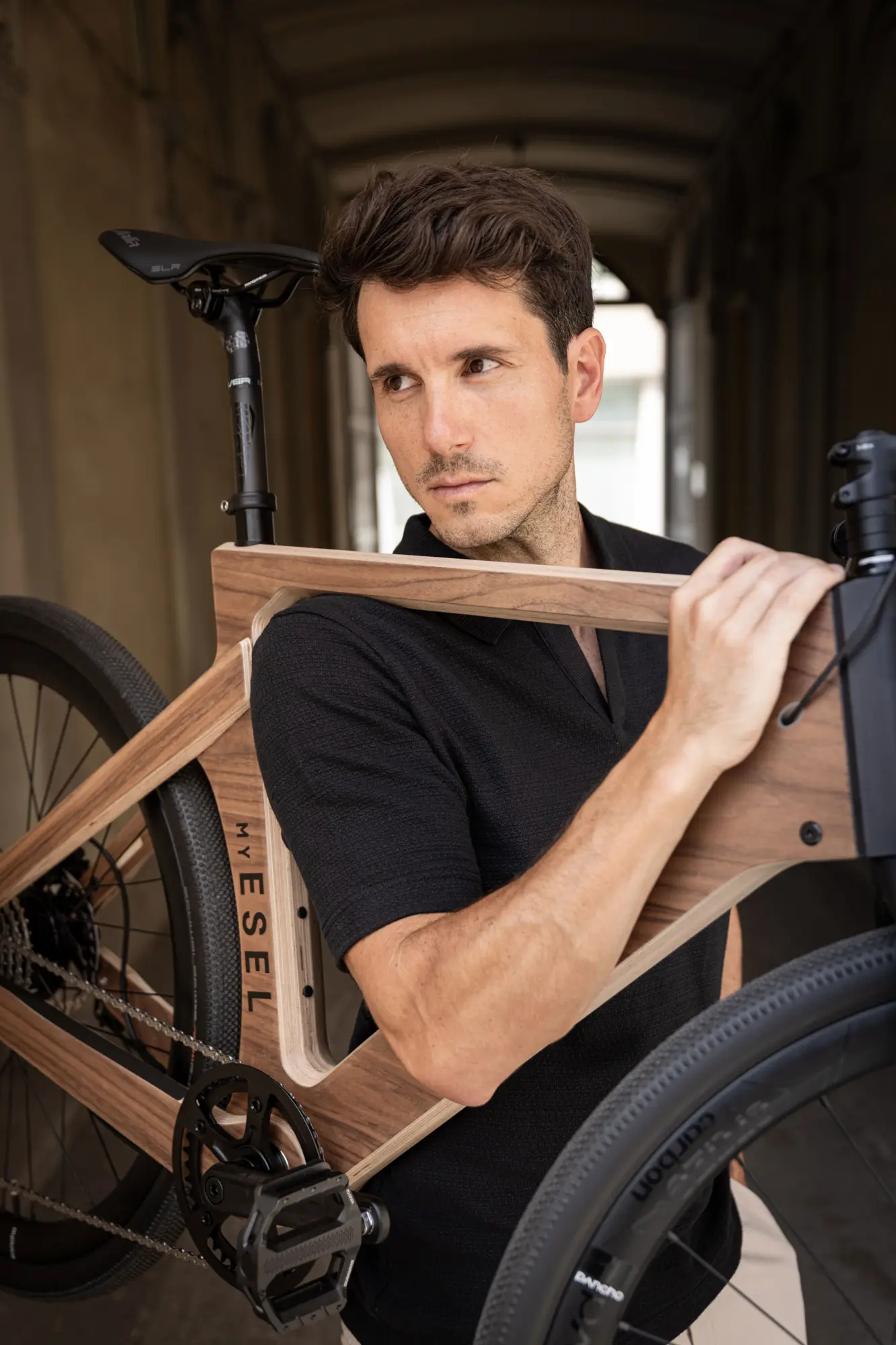 The new E-Urban Bike from My Esel uniquely combines a distinctive design language, sustainability, and innovation. The wood-composite frame made of fine walnut is a statement for urban riders ready to explore new paths. Its blend of high stiffness and natural vibration damping ensures an unmatched riding experience. Crafted from renewable, locally sourced wood from sustainable forestry, it represents both responsibility and style. With its invisibly integrated e-bike drive, GPS tracking, and uncompromising dynamics, it stands as the fastest bike for the city.