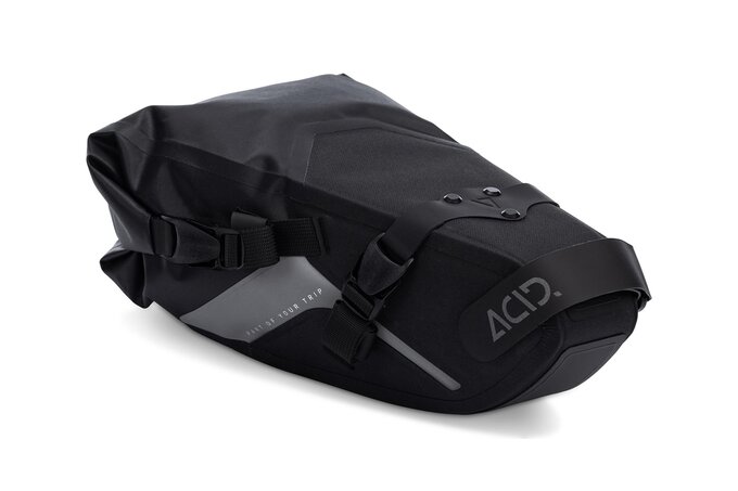 The ACID PACK PRO 6 saddlebag was developed with experienced bikepackers and is suitable for micro-adventures as well as longer bikepacking tours. The compact bag attaches securely to the saddle rails and seat post, providing enough clearance from the rear wheel for sporty off-road riding. Reflective elements enhance visibility in low light conditions, and a rear light can be integrated. The bag's contents can be further compressed using an air release valve. The separately available ACID seat post adapter is compatible with dropper post seat posts.
