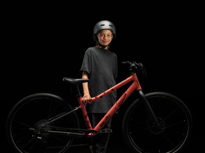 woom EXPLORE - the new all-round bike from woom for children aged 6 to 14. With high-quality components such as powerful hydraulic disc brakes from PROMAX, lightweight and agile Billy Bonkers tyres from Schwalbe, ergonomic Ergogrips and a new saddle specially developed in collaboration with Selle Royal, the woom EXPLORE impresses with its striking frame design and sporty geometry, which offers a dynamic riding position and sets new standards in the all-round children's bike segment. It is available in four expressive colours with a matt finish.