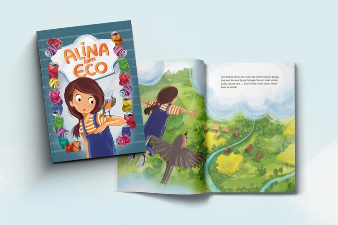 The kid's book “Alina and Eco” introduces children to the world of aluminium recycling. The mixture of non-fiction and fiction with loving illustrations makes the complex topic interesting. The aluminium rolling and recycling company Speira is the publisher, but plays no role in the content. In this passive role, we position Speira as an expert without allowing the book to become a mere advertising tool. Initially produced in German, English and Norwegian in a small batch for employees and as a giveaway for trade fair appearances, the children's book is also intended to find its way into elementary school and the retail trade.