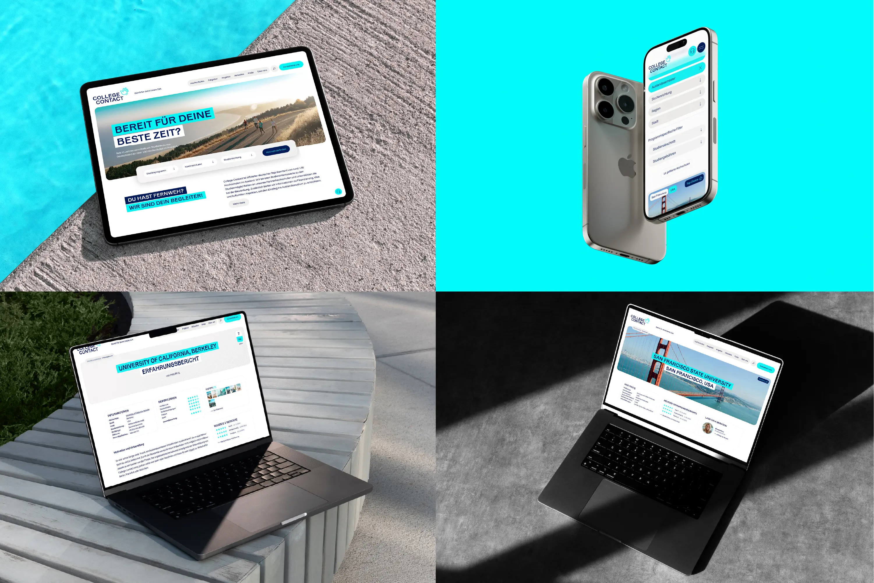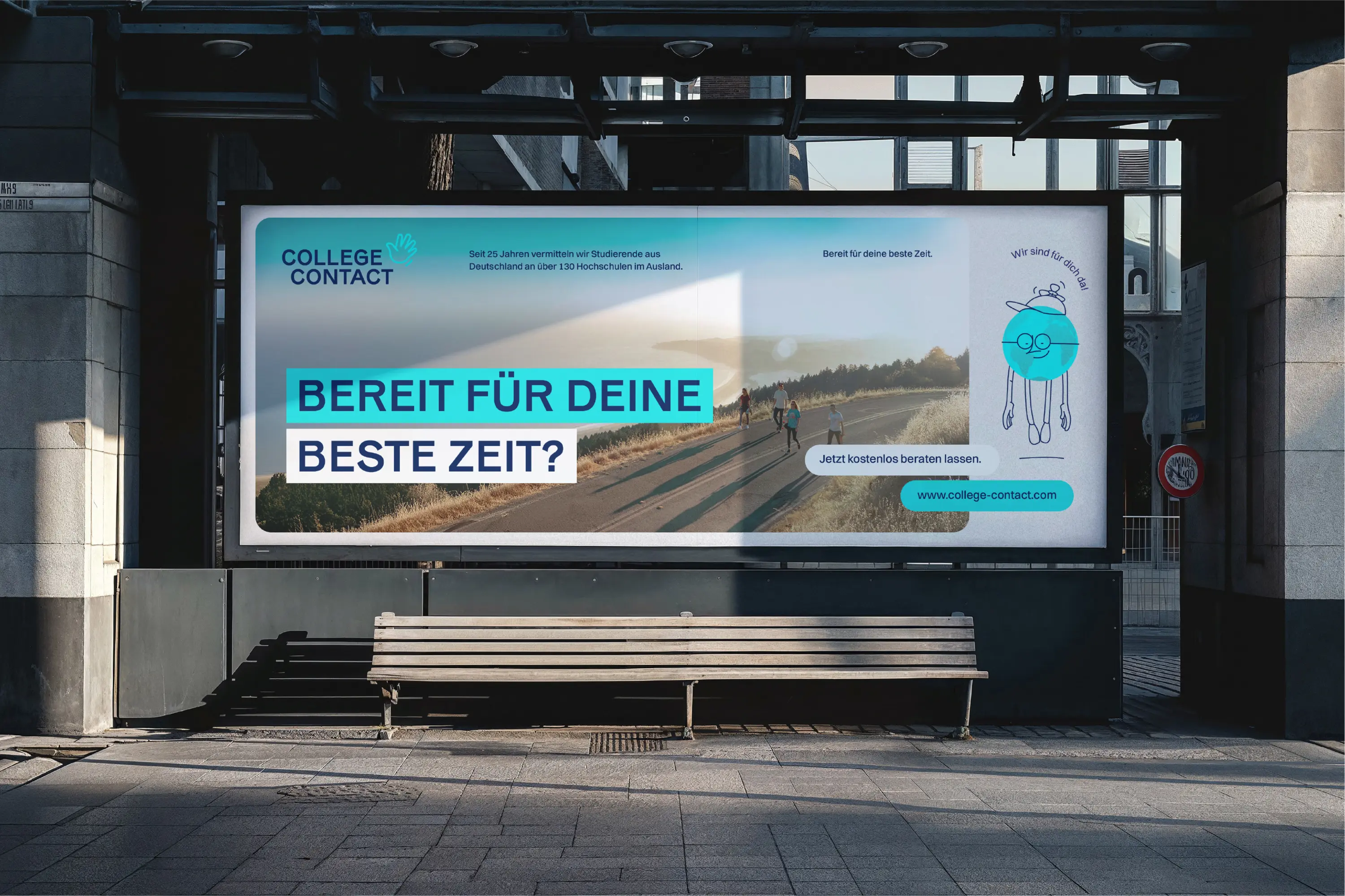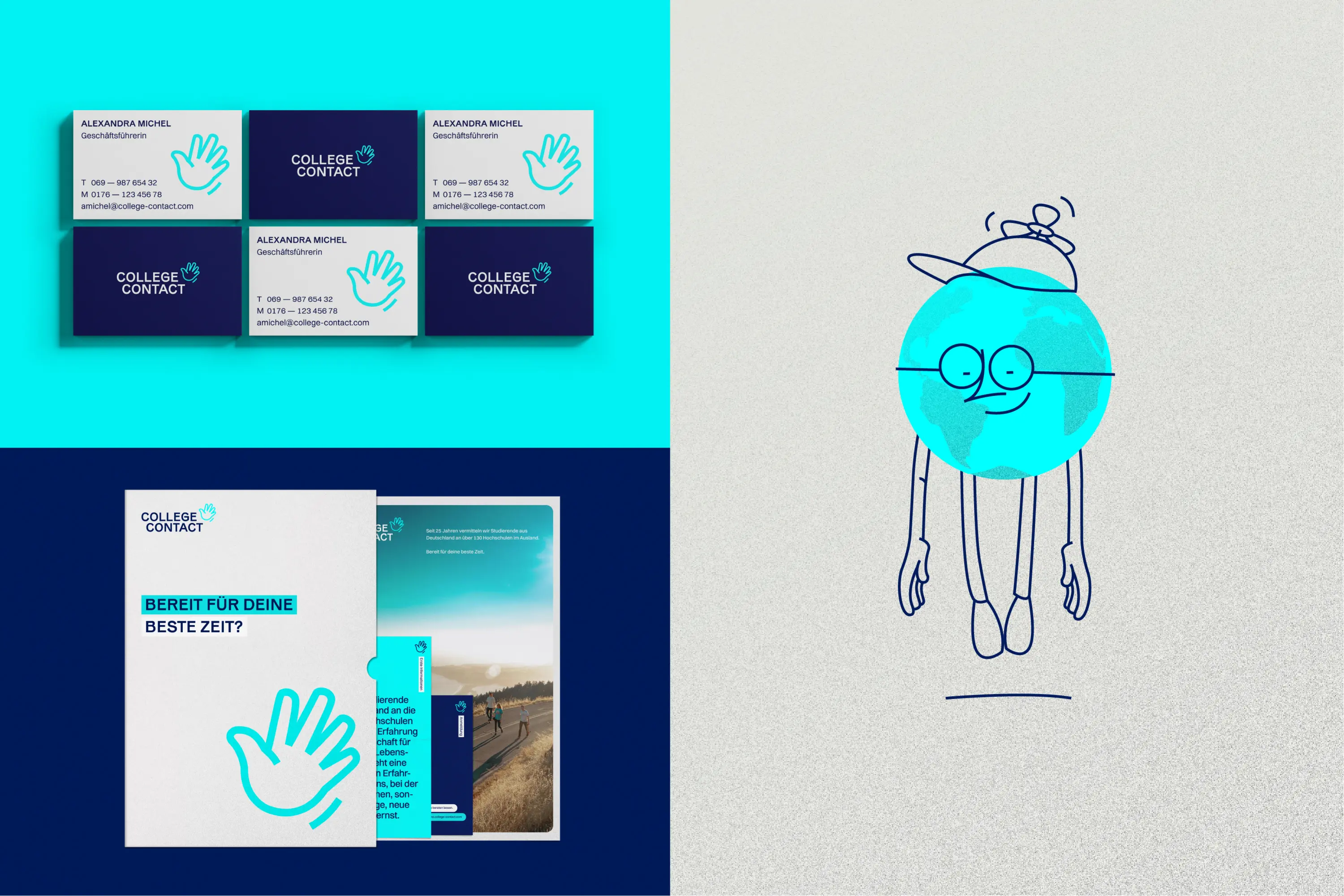Ready for your best time? College Contact places students at the most exciting universities worldwide - with a lot of experience, genuine passion, and the goal of giving them the best time of their lives. The rebranding translates this mission into an unmistakable trademark: a globally understood waving hand as a universal sign of a warm welcome. Combined with a young, fresh, and digital design toolbox, the academic service provider becomes a love brand. The message is clear: the world welcomes you - get ready for an unforgettable time.