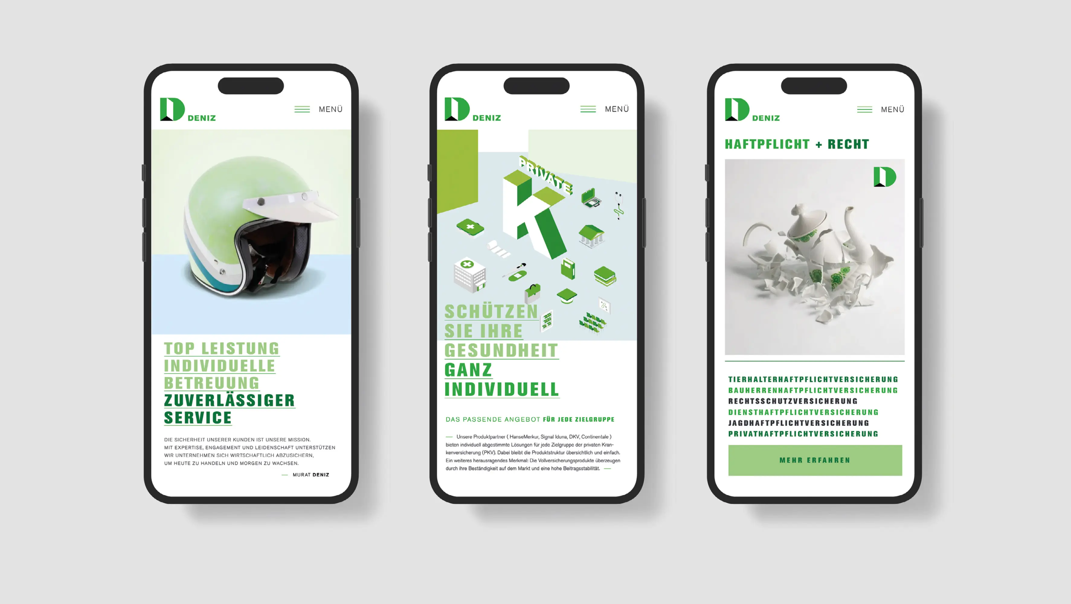 In an industry full of clichés, DENIZ INSURANCE AGENCY creates a brand that stands out: honest, approachable and distinctive. The “D” in the logo becomes an open door – a symbol of trust and security. Shades of green, clear typography and imagery that makes protection tangible form a consistent brand design. Bespoke illustrations and a user-centred website translate complex content into relatable experiences. The result: an authentic brand world born from conviction – positioning DENIZ as the FIRST ADDRESS IN INSURANCE.