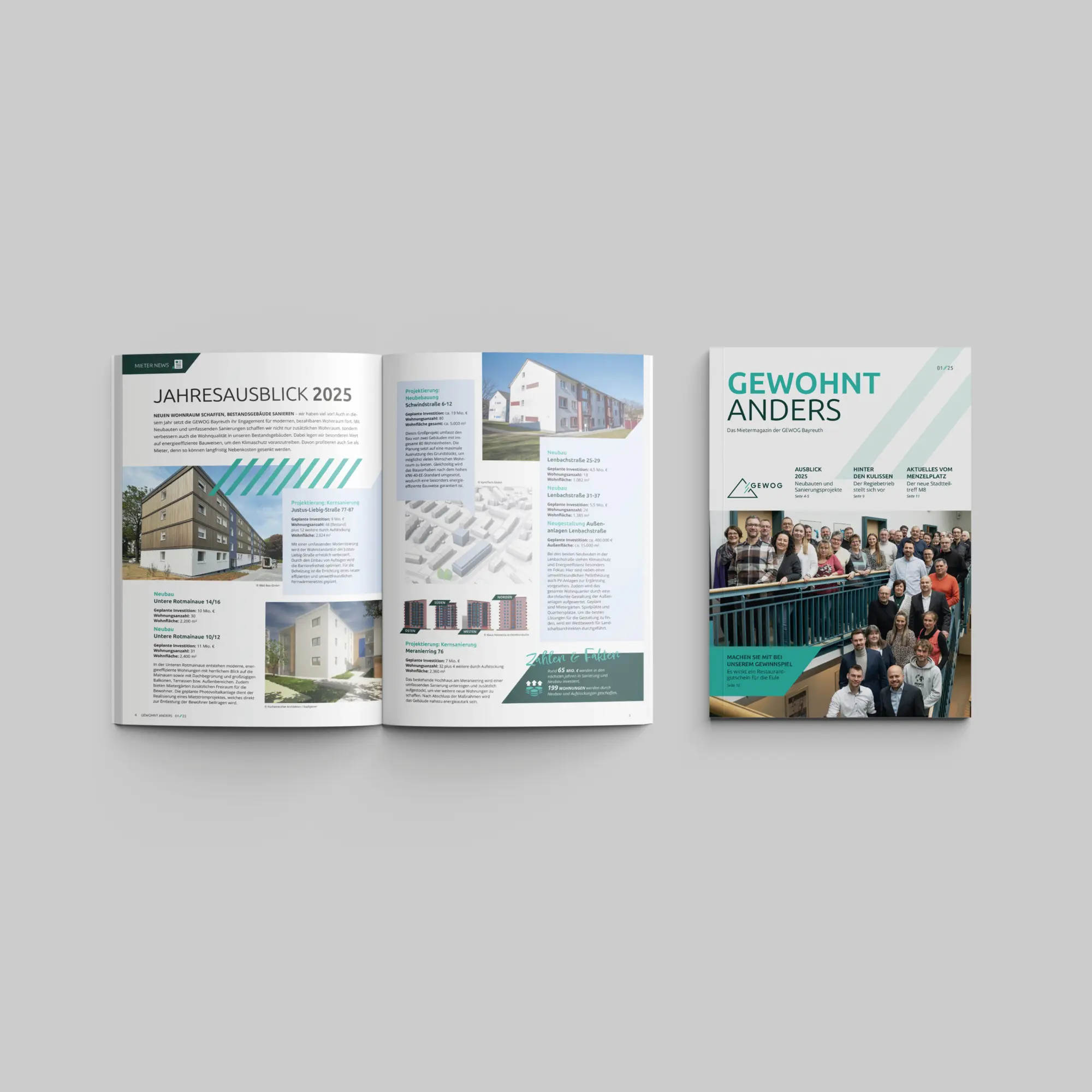 GEWOG, Bayreuth’s largest housing provider, received a comprehensively renewed branding from us. In co-creation workshops, values, target groups, and visual identity were redefined. The logo, colour scheme, typography, and imagery build on the previous brand presence and develop it into something more modern, vibrant, and timeless. We were responsible for the consistent implementation across all areas: from the completely relaunched website to business stationery, marketing materials and a tenants' magazine. The relaunch achieved a successful repositioning – moving away from “social housing” toward a contemporary housing company for everyone.