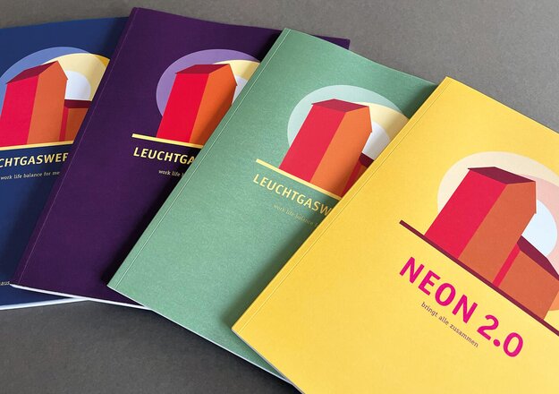 New living space was created in the former gasworks in Nauen near Berlin. Town gas used to be produced in the industrial monument for street lighting. A logo and an interdisciplinary design concept were developed for the brand Leuchtgaswerk Nº1®. The basis of the concept is the theme of light. Bold colours and reduced illustrations can be found in print and the interiors. Brochures, a website, corridor designs and illuminated signs for the facades were designed on the basis of the concept. The graphic and interior design shapes the visual identity of the entire area and corresponds to the character of this branded property.