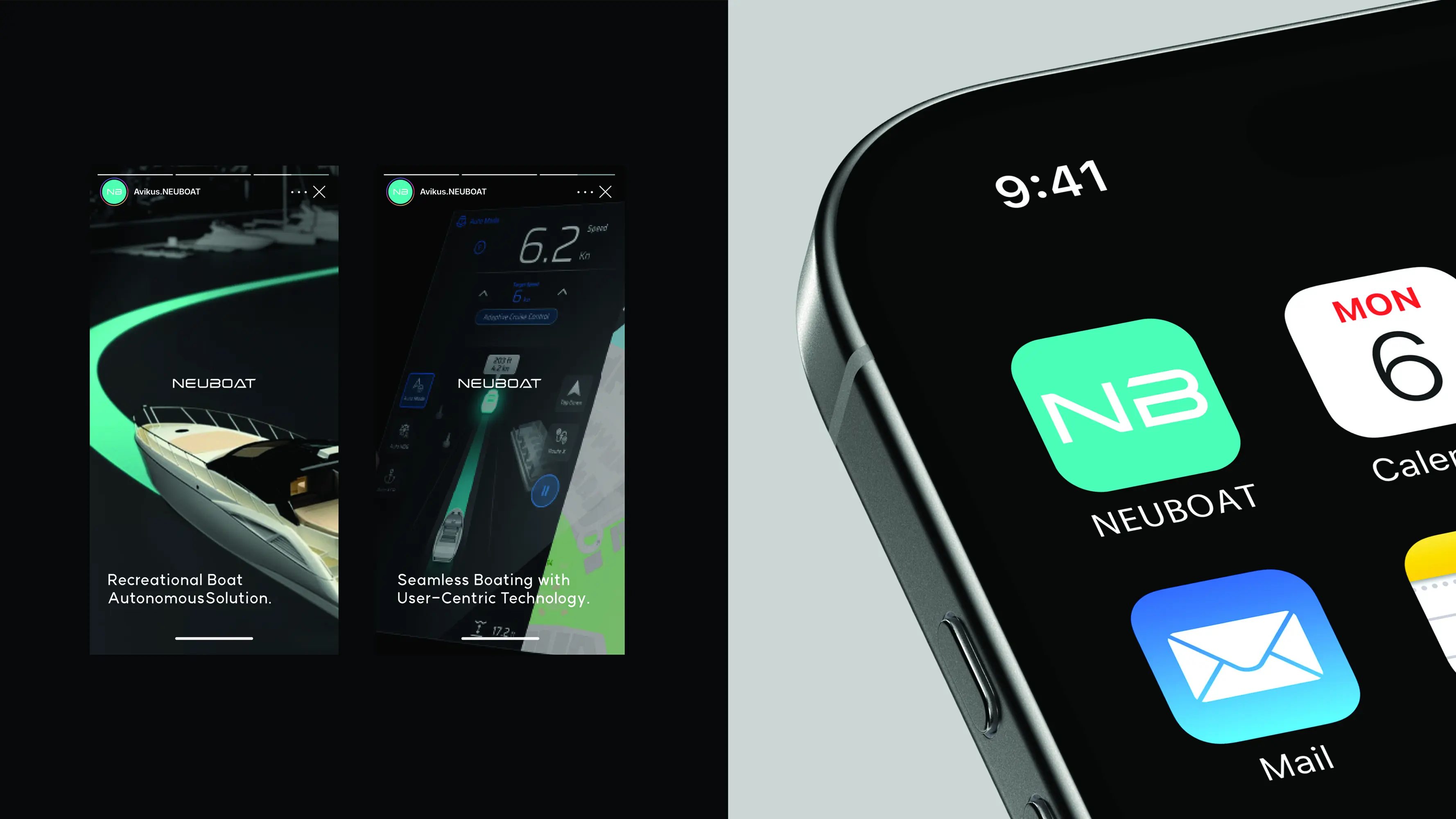 NEUBOAT is an autonomous leisure boat solution brand launched by Avikus Company, with the goal to enter and promote the autonomous leisure boat market in North America. NEUBOAT's brand design embodies its core values of popularising autonomous technology and enabling anyone to enjoy leisure boating easily and safely. Specifically, it has created a graphic motif that visually expresses the vision technology, a strength of autonomous technology, and consistently applied it across various communication channels, along with the brand logo, to effectively establish NEUBOAT's unique visual identity.