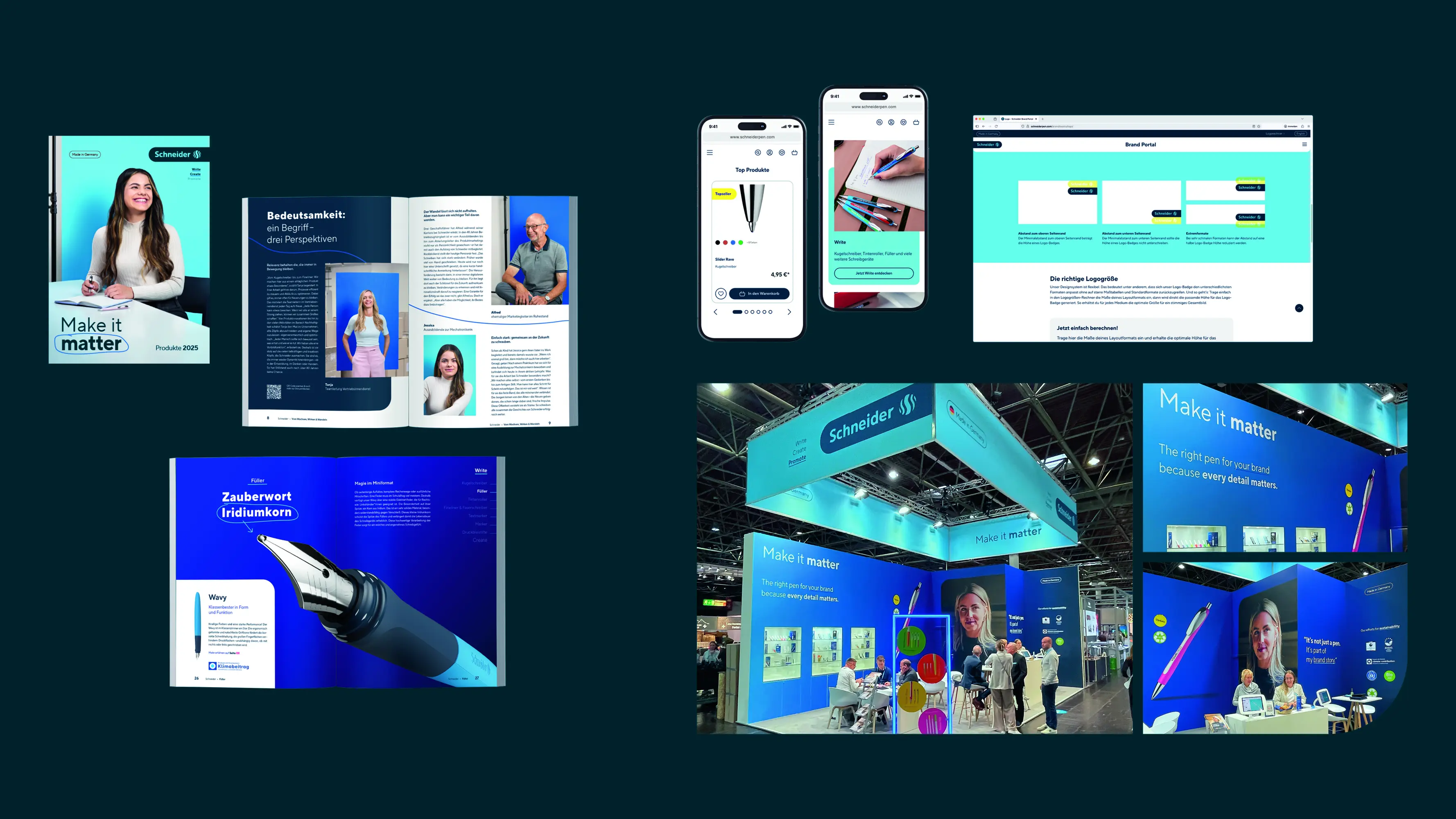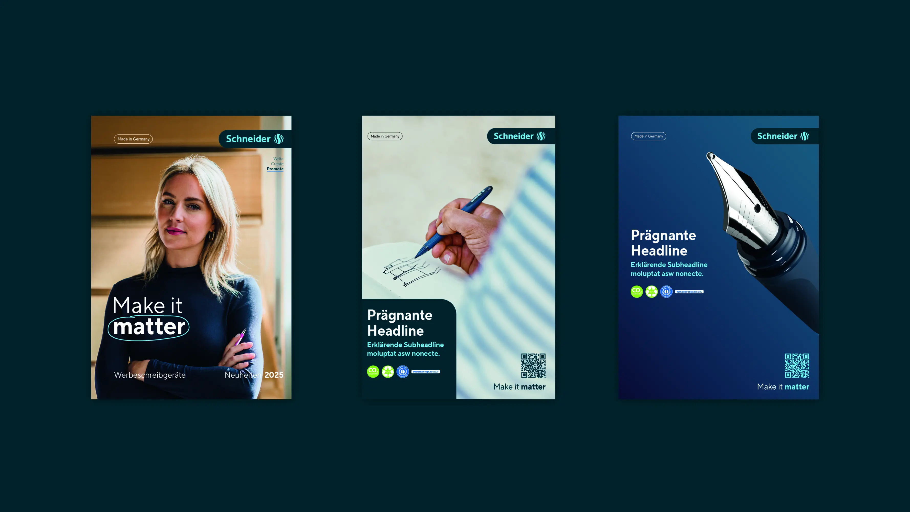 For a long time, the claim 'Write it' defined Schneider. Rethinking led to a new question: Why write something down? Because it matters. This is captured in the new claim 'Make it matter': the emotional value of writing is now the focus. Significance shapes the entire brand communication. The logo and brand elements have been modernized, digital applications simplified. The new logo is more minimal, works better in small sizes, and is flexible in use. The refreshed colour palette, a distinctive new corporate typeface, and a versatile design system now ensure a consistent and impactful presence across all media.