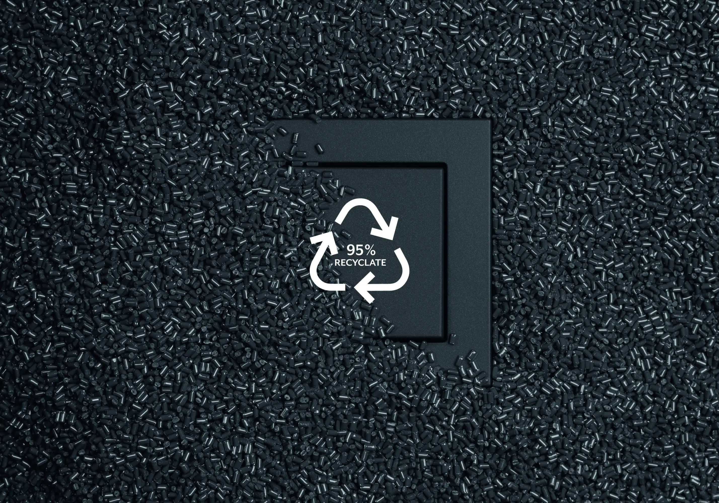 The plastic design covers and design frames of the A CREATION, A 550, and A FLOW switch ranges in matt anthracite are made from 95% recycled material and are sustainable and resource-saving. Recyclate is a material that is obtained by processing and recycling plastic waste. In the recycling process, recyclable materials are collected, sorted, cleaned, and then mechanically shredded. This material is then melted and processed into recyclate, as described in DIN ISO 14021. Energy from hydropower is used in this process. The frames and covers produced in this way cover a wide range of applications - from conventional installations to smart homes.