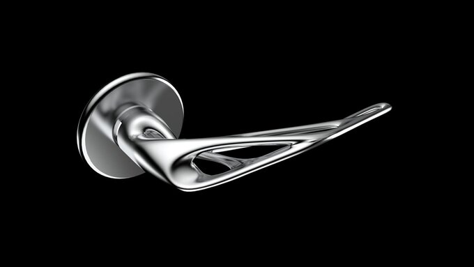 The principle of lightness is at the heart of this lever handle with fitting. Inspired by the natural aesthetics of bird bone structures, the design is based on topology-optimized structures that harmoniously combine material efficiency and structural strength. “Aeroflow” shows how technology and nature can merge into an architectural unit that is as powerful as it is aesthetically appealing.
