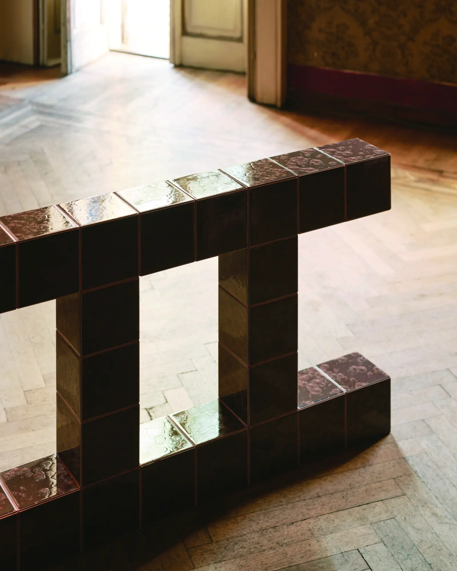 ‘Crisscross’, ‘Cracks’, ‘Mycelium’, and ‘Freckles’ are porcelain tile series designed by India Mahdavi for Alternative Artefacts Danto, produced at the company’s 140-year-old factory on Awaji Island. Each explores a distinct ceramic language: raised grid motifs in ‘Crisscross’; glowing crackle glaze in ‘Cracks’; fluid crystalline patterns in ‘Mycelium’; and playful speckled surfaces in ‘Freckles’. Merging Japanese craft traditions with Mahdavi’s bold sensibility, the series reinterprets heritage techniques as vibrant, tactile surfaces—expanding the expressive role of ceramics in contemporary architecture.