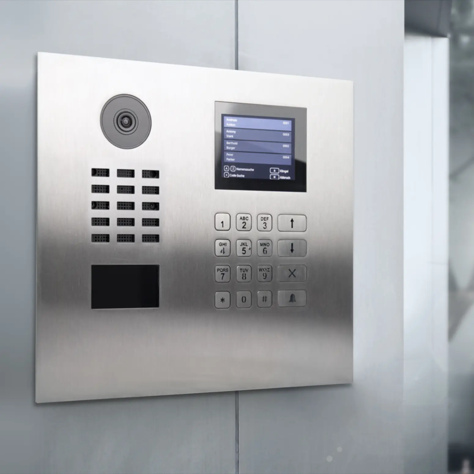 The DoorBird IP Video Door Intercoms of the D22x series combine modern, timeless design with premium craftsmanship and innovative IP technology. A clear, minimalist form and a refined stainless steel front give it an elegant presence. The modular system allows precise customization: surface- or flush-mounted, with fingerprint reader, keypad or display available in over 50 materials and RAL colours. Designed for high-end residential and commercial buildings, the series impresses with intuitive operation, resilience, and exceptional design flexibility.