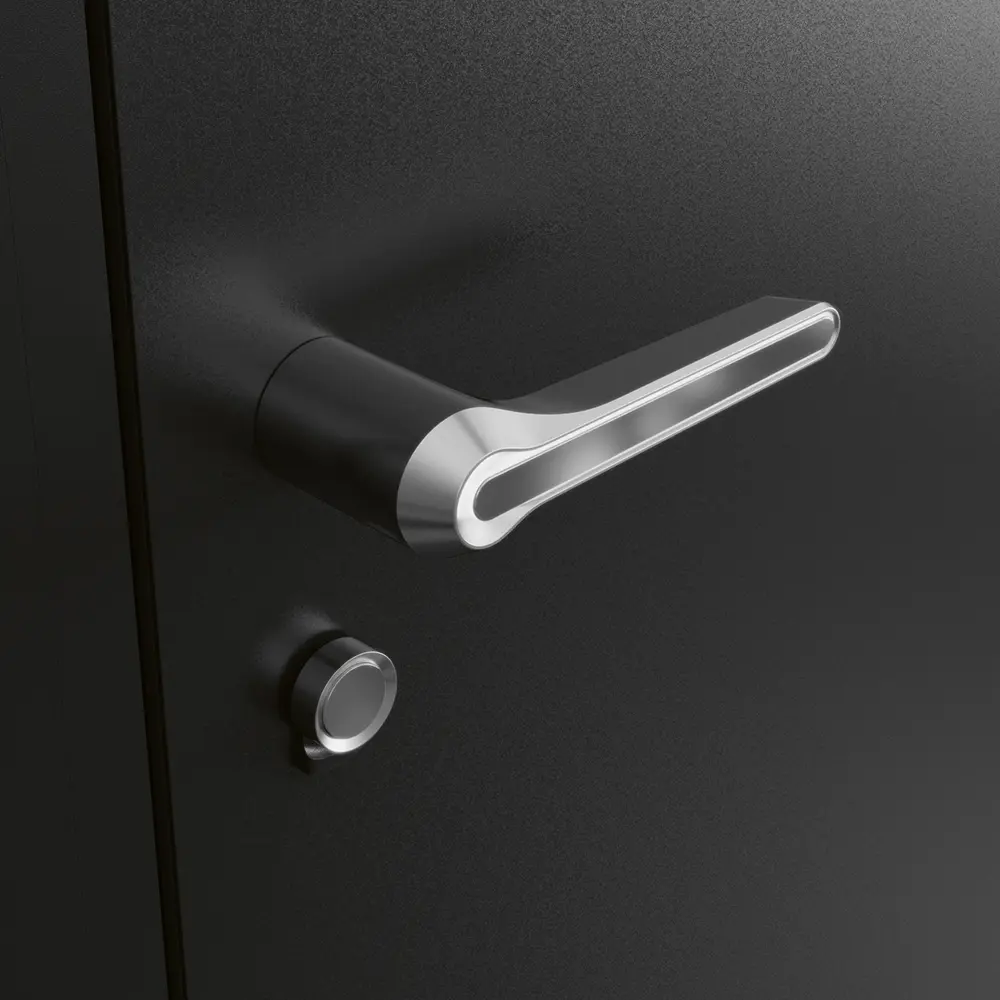 Brilianta is the signature handle of Pirnar’s Premium CarbonCore line, designed to inspire lasting excitement and convey beauty and security in everyday interaction. Conceived as a piece of jewelry for the door and an object of desire to the touch, it is crafted from a precision cast stainless steel body with a premium coating that offers a refined finish. At its heart lies a signature inlay element that transcends ornamentation, enabling personal expression and harmony with the interior, highlighted by a subtle glow. Not aiming to follow or create trends, Brilianta stands for permanence and enduring value, made to be used for decades