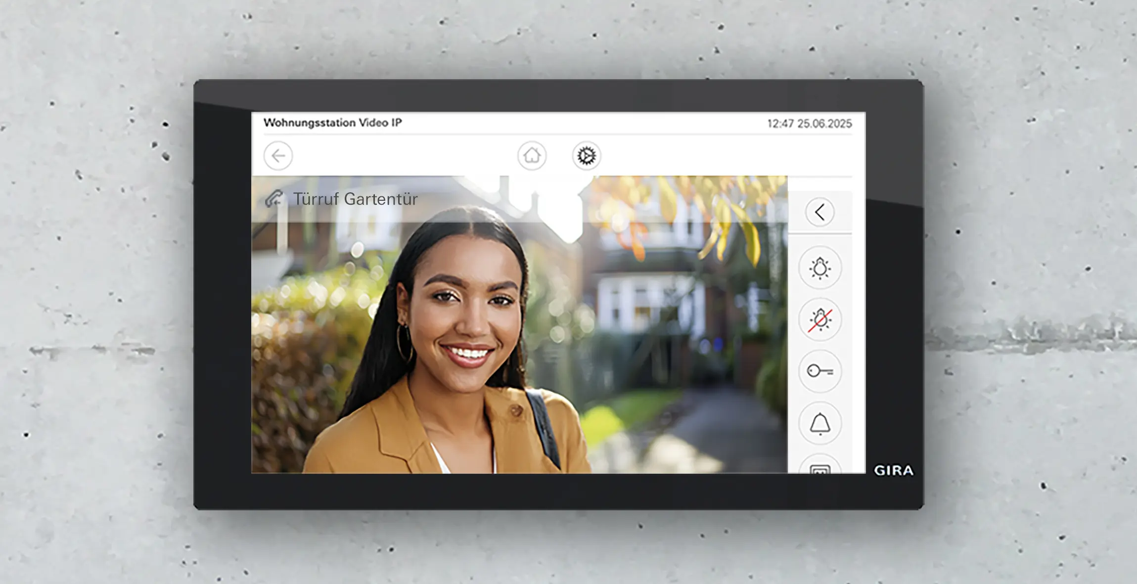 The IP video home station is part of a new IP-based Gira door communication system. The device combines modern design with innovative technology and ensures convenient video door communication indoors. With a large 7-inch touch display and user-friendly operation, it is the technical solution for single-family homes to large properties. With its minimalist design, it is unobtrusive and can be easily integrated into a wide variety of living environments. The home station is available in black or white.